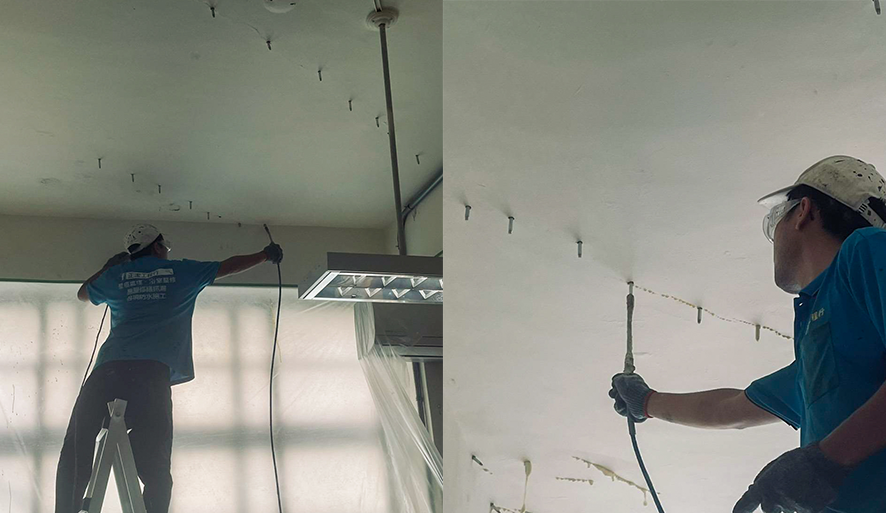 灌注的材料在接觸水氣後會膨脹,藉此封堵滲水路徑,灌注過程中多餘的材料會自然溢出,因此事前的防護相當重要,也能降低後續清理的困擾。