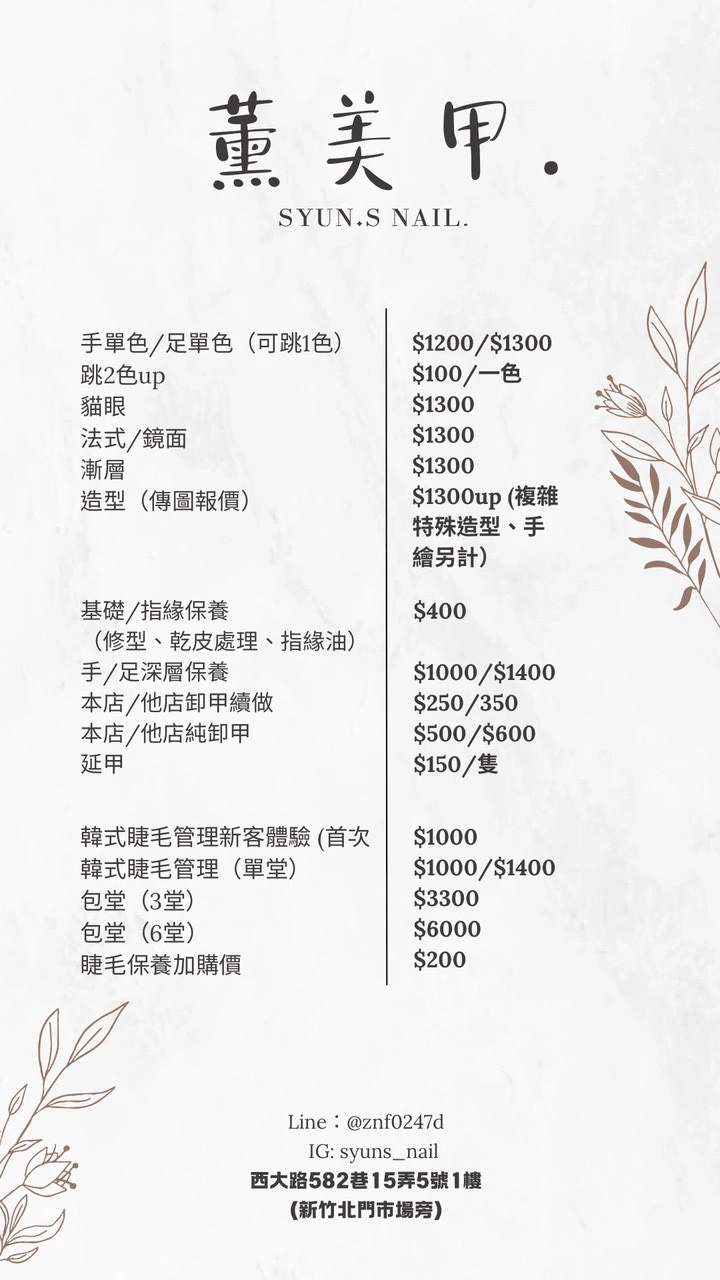 薰美甲 價目表