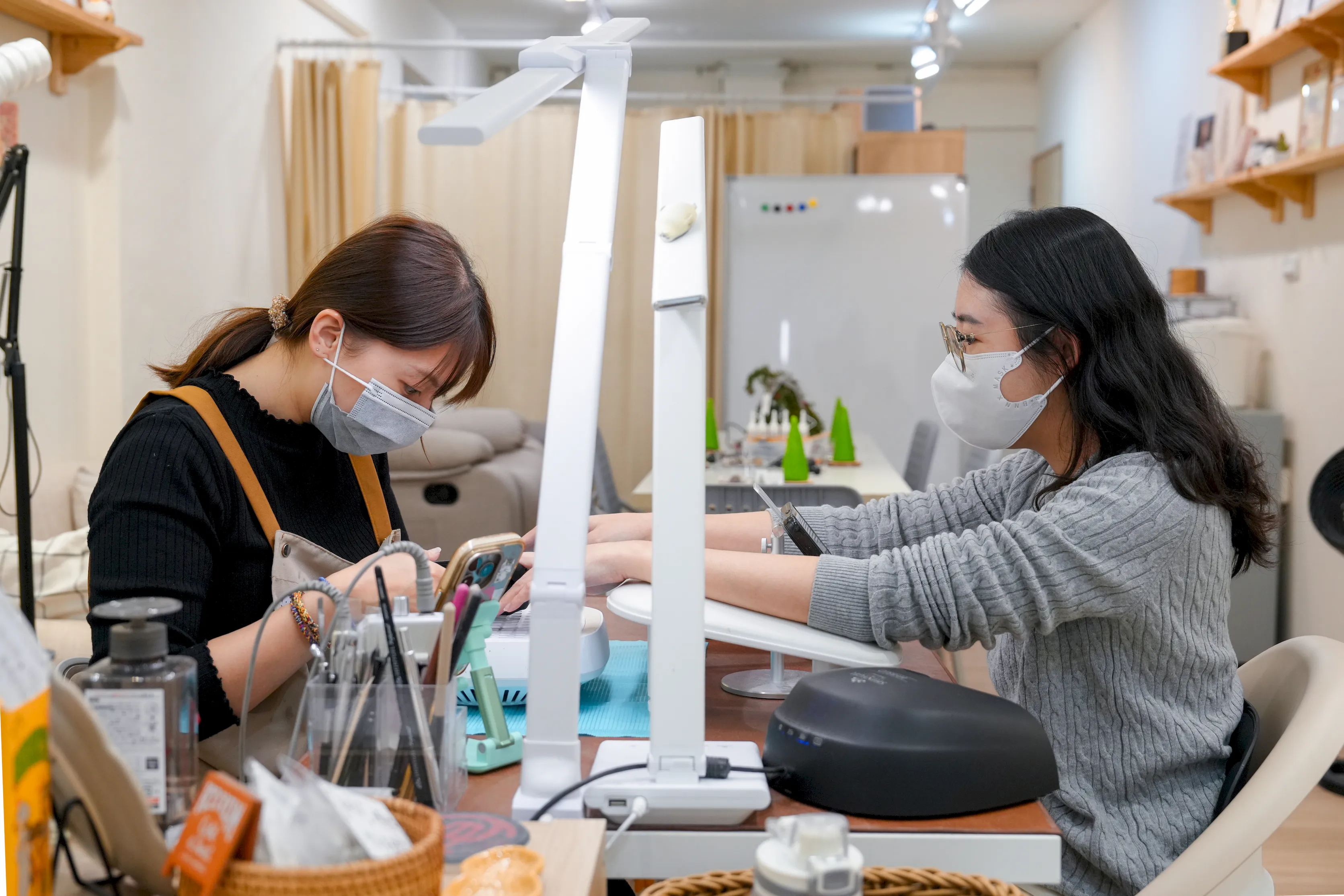 ▼走進店內後,會發現空間不算大,整體是由兩位美甲師與一位美睫師共同合租的工作室,而我這次預約的美甲師座位位在左側,因此我也被安排在這個位置。