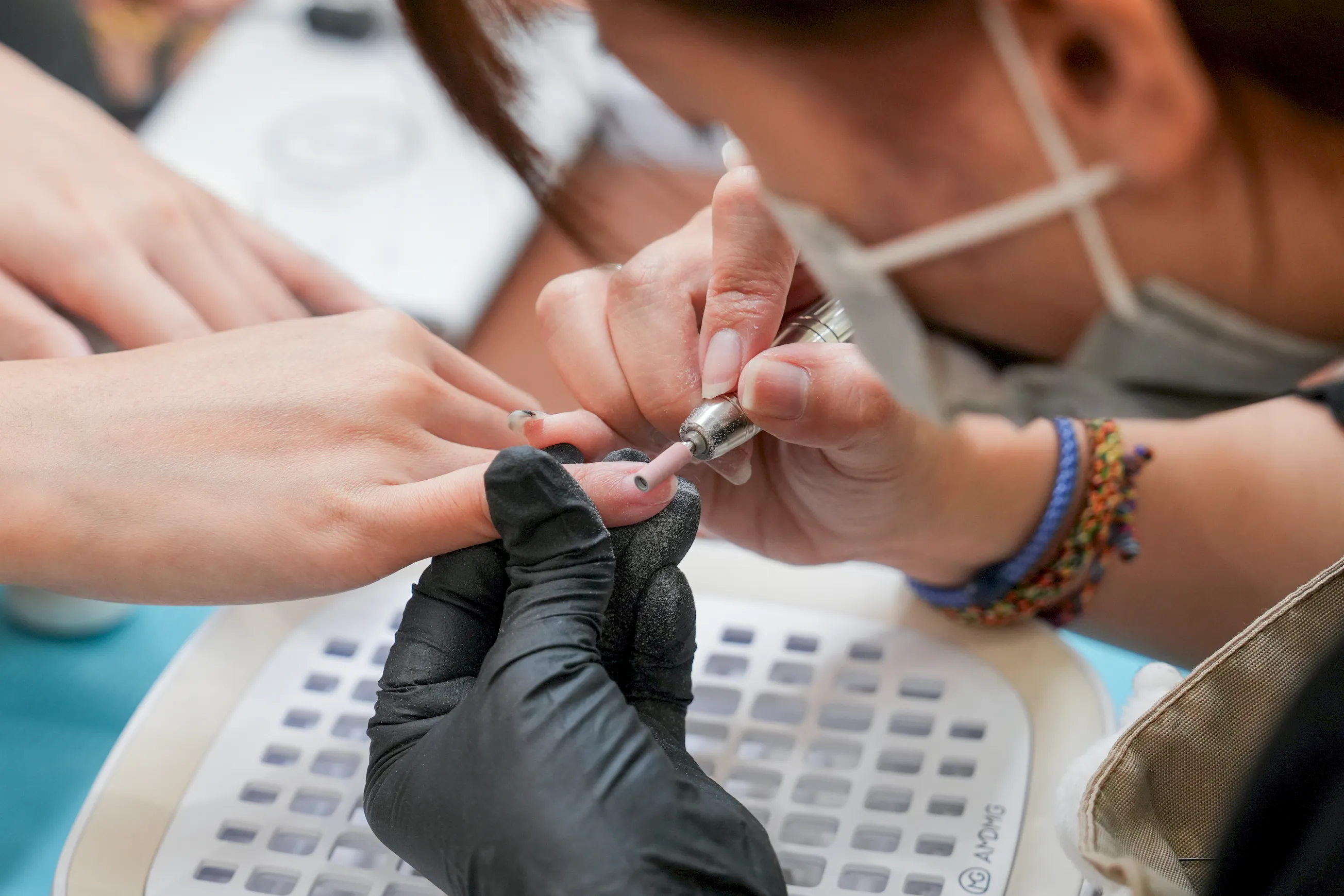 ▼到座位上後,美甲師會先細心地與我確認偏好的指甲長度與造型,過程中也會依照我的手型與日常習慣給予一些建議,讓整體設計在好看之餘,也兼顧實用與舒適度。座椅使用的是塑膠椅,上面放有一個護脊坐墊,雖然談不上特別舒適,但長時間坐下來,腰部倒也不會感到痠痛。
