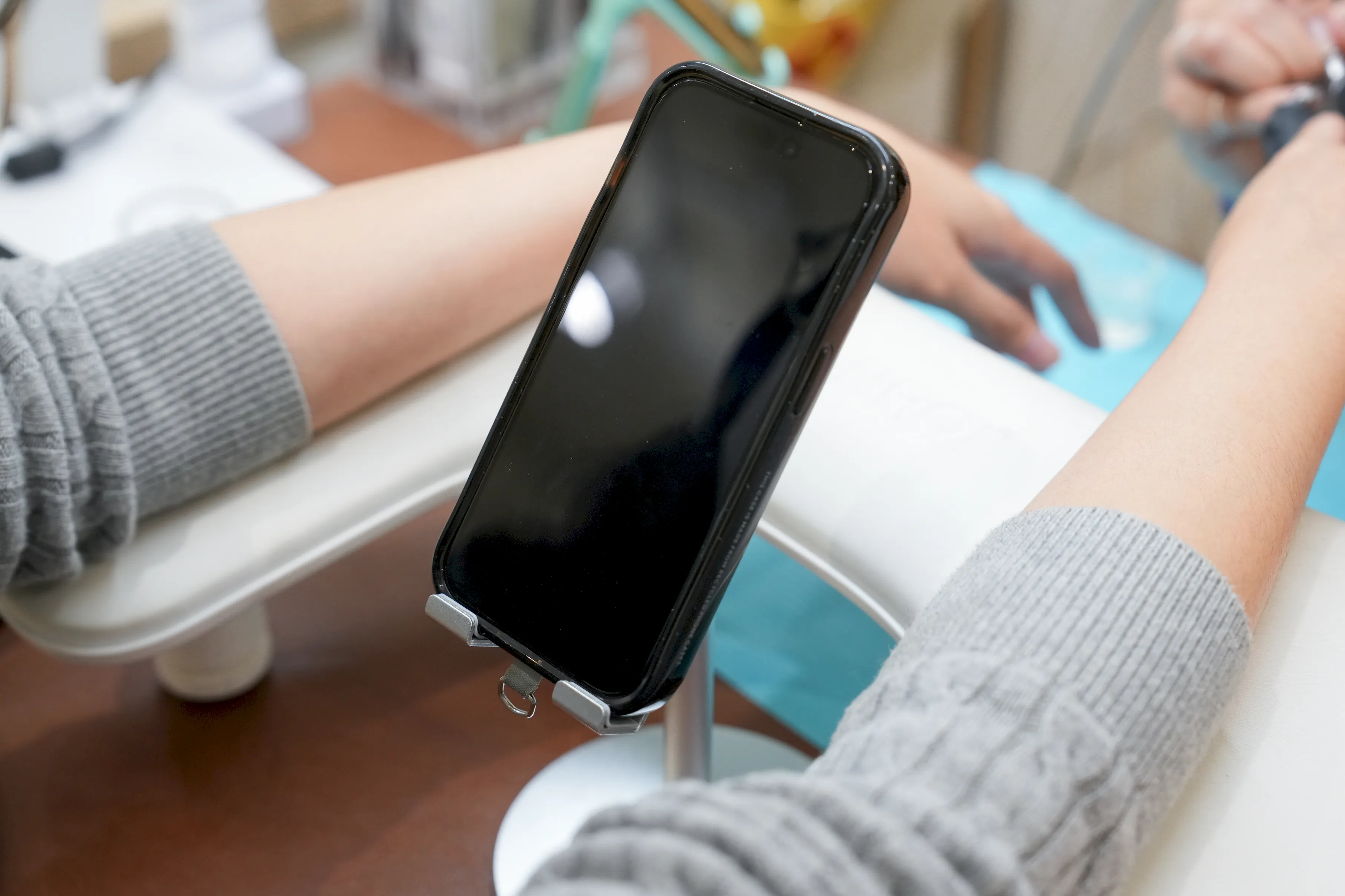 ▼正前方就放著一個手機支架,可以一邊做美甲一邊追劇,整個過程蠻舒服的。雖然現在不少美甲店都有提供手機支架,但有些是放在側邊,看久了脖子真的會有點痠。
