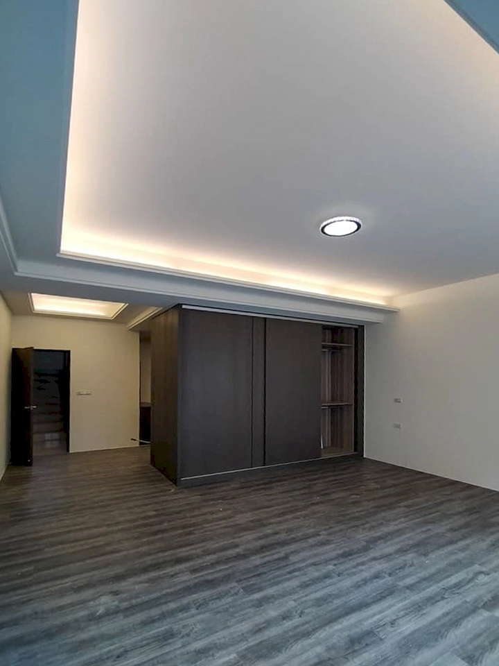 ▼跟妹妹走進新屋時,第一印象是空間非常大,剛好屋內還沒擺放家具,能更清楚觀察牆面的粉刷細節,我發現無論是大範圍遠看,還是近距離細看,牆面都很平整,完全看不見刷痕或不平整的狀況,包括轉角、接縫處都有均勻上漆,真的能感受到師傅對細節的極致追求。