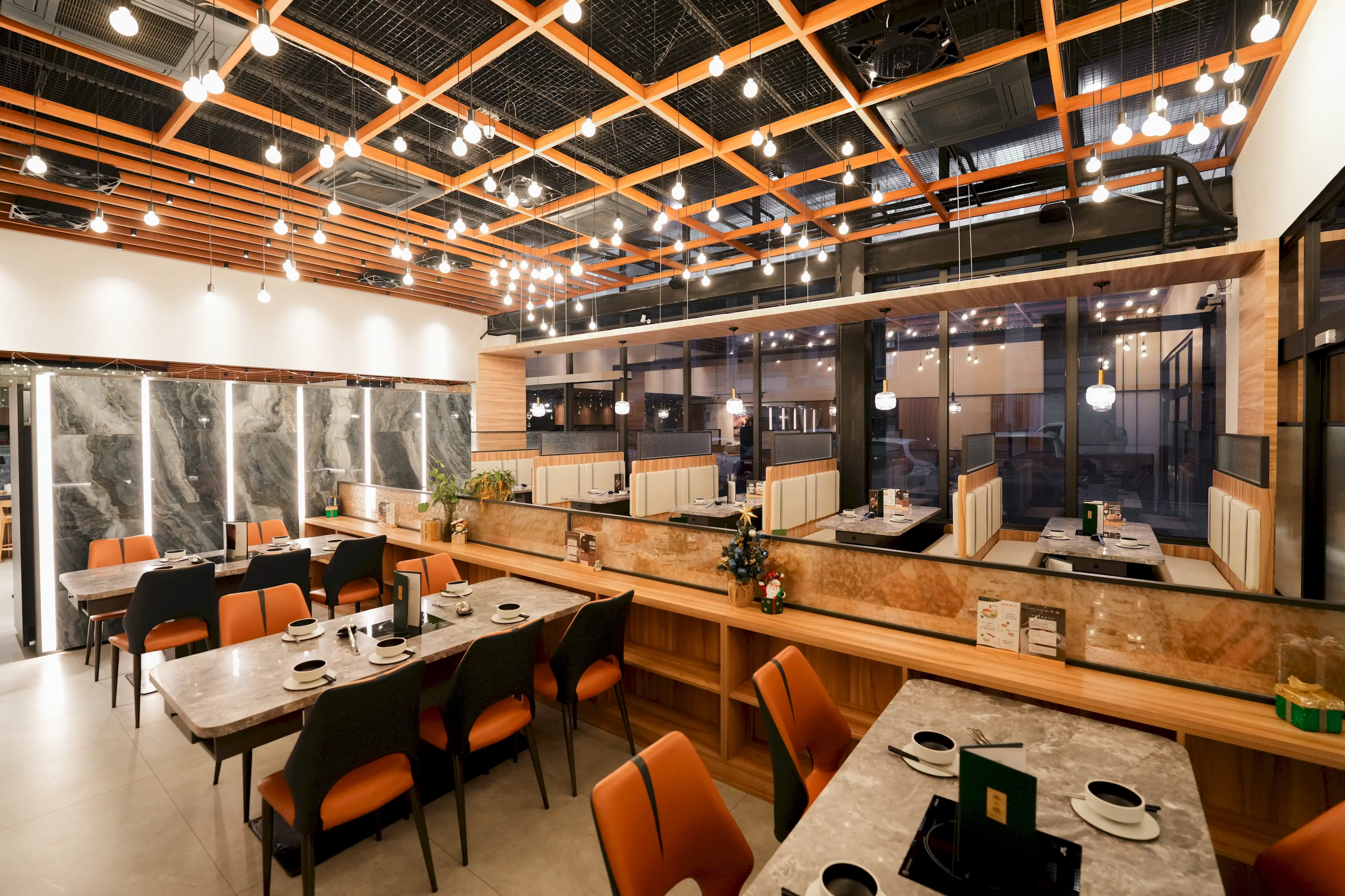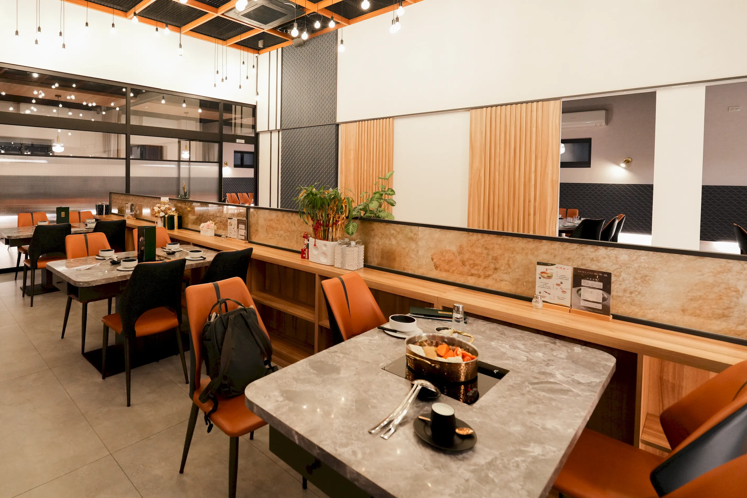 ▼「牛琅溫體牛火鍋」竹北店內非常寬敞明亮,店內主要以白色、奶茶色與焦糖色系搭配,再以暖黃燈光,營造出輕奢又溫馨的用餐氛圍,而店內也有提供獨立包廂,在這樣的氣氛下,又能保有隱私,完全是聚餐首選。