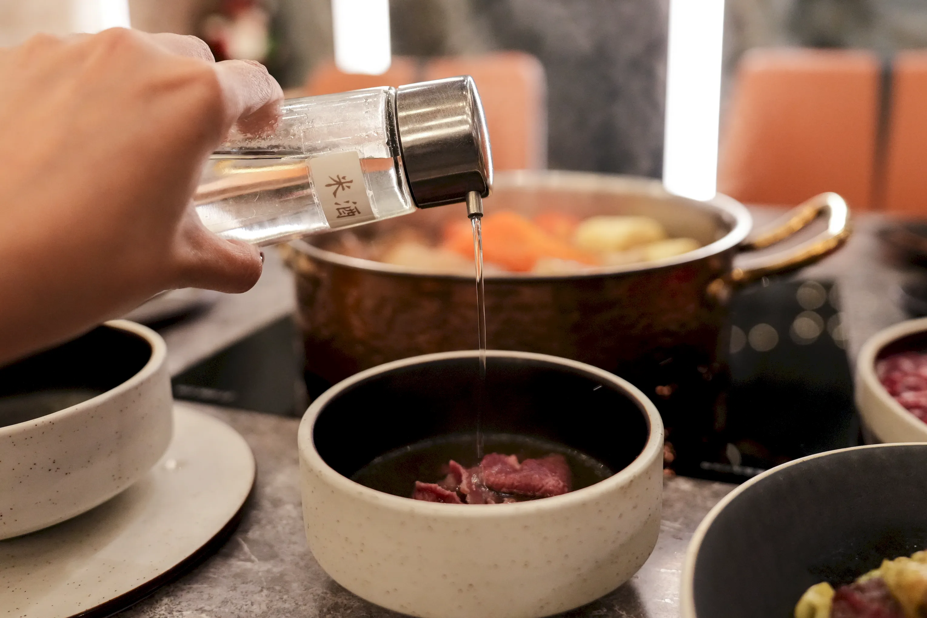 ▼在湯裡加入少量米酒,更能提出牛肉本身的香氣與甜味,讓湯頭更加順口。