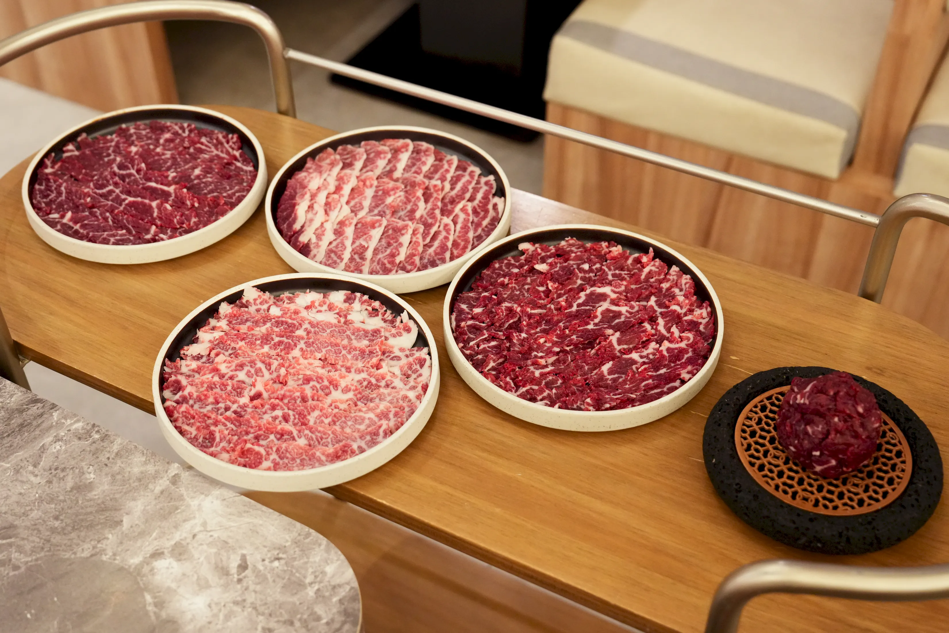 ▼特選牛肉盤為每日限量供應,當天比較早去用餐,剛好有四種部位可以選擇(圖片中的四個白盤)。服務生會逐一介紹各個部位吃起來的口感,依照自己的喜好選擇就可以了。