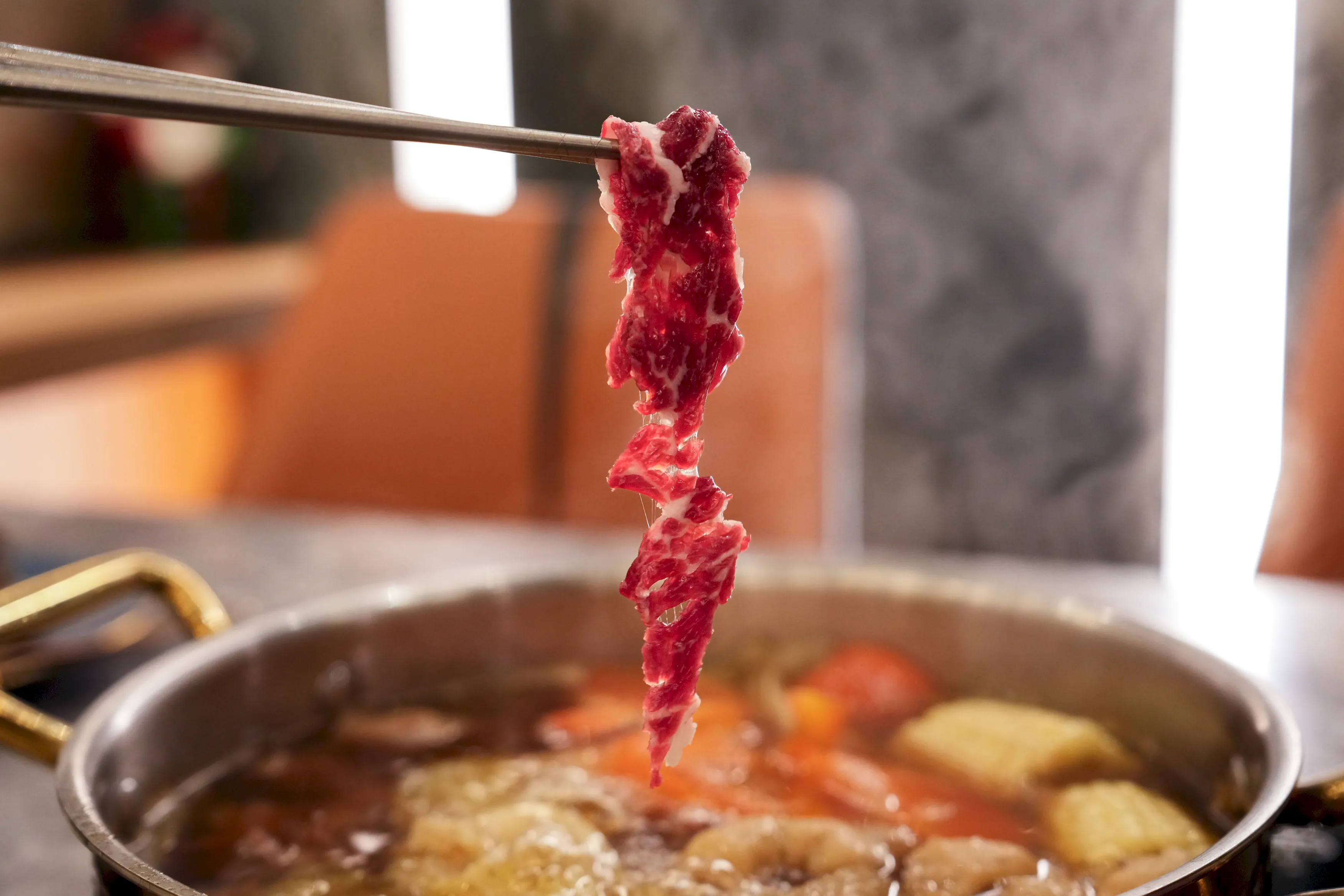 ▼下鍋輕涮3秒即可起鍋,約五分熟時最完美,入口幾乎不需要咀嚼,肉質柔軟到像直接在嘴裡化開,好吃到讓人不知不覺閉上眼睛,細細品嚐。