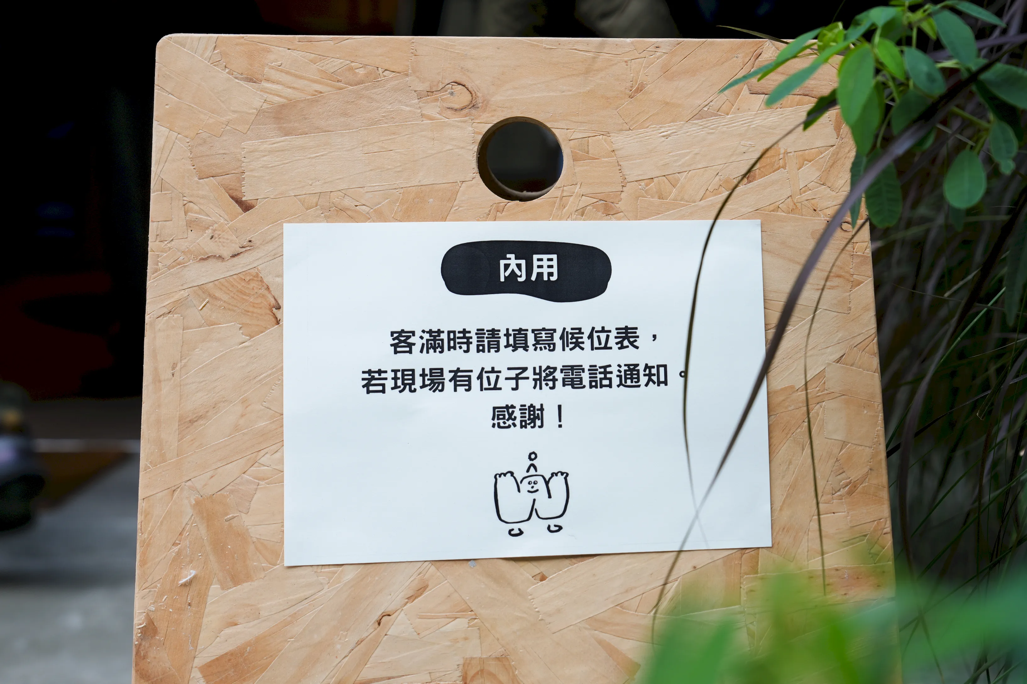 ▼如果想要內用,因為店內座位不多,門口會放置告示牌說明,遇到客滿時需先在門口填寫候位單,待有座位時店家會再以電話通知。
