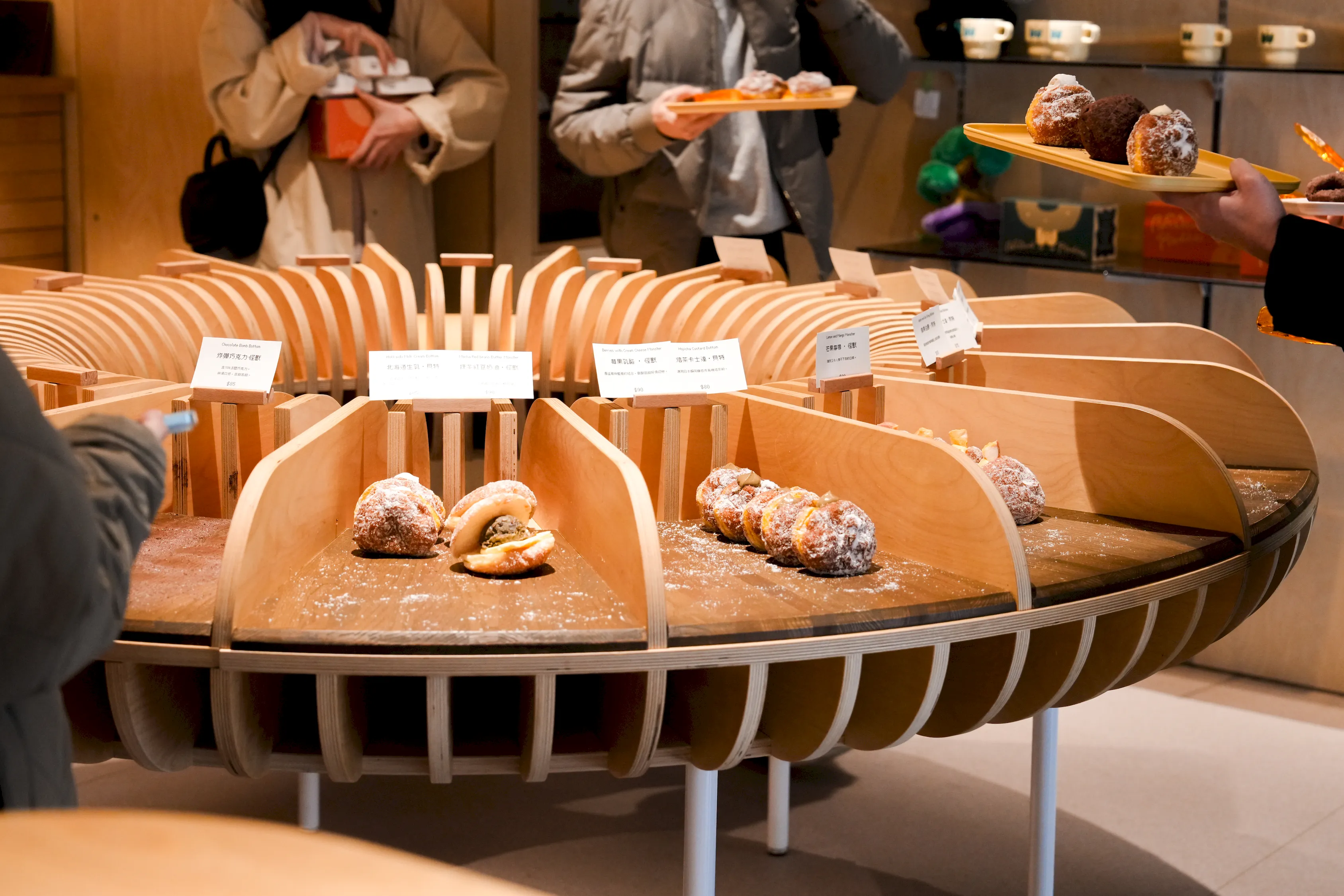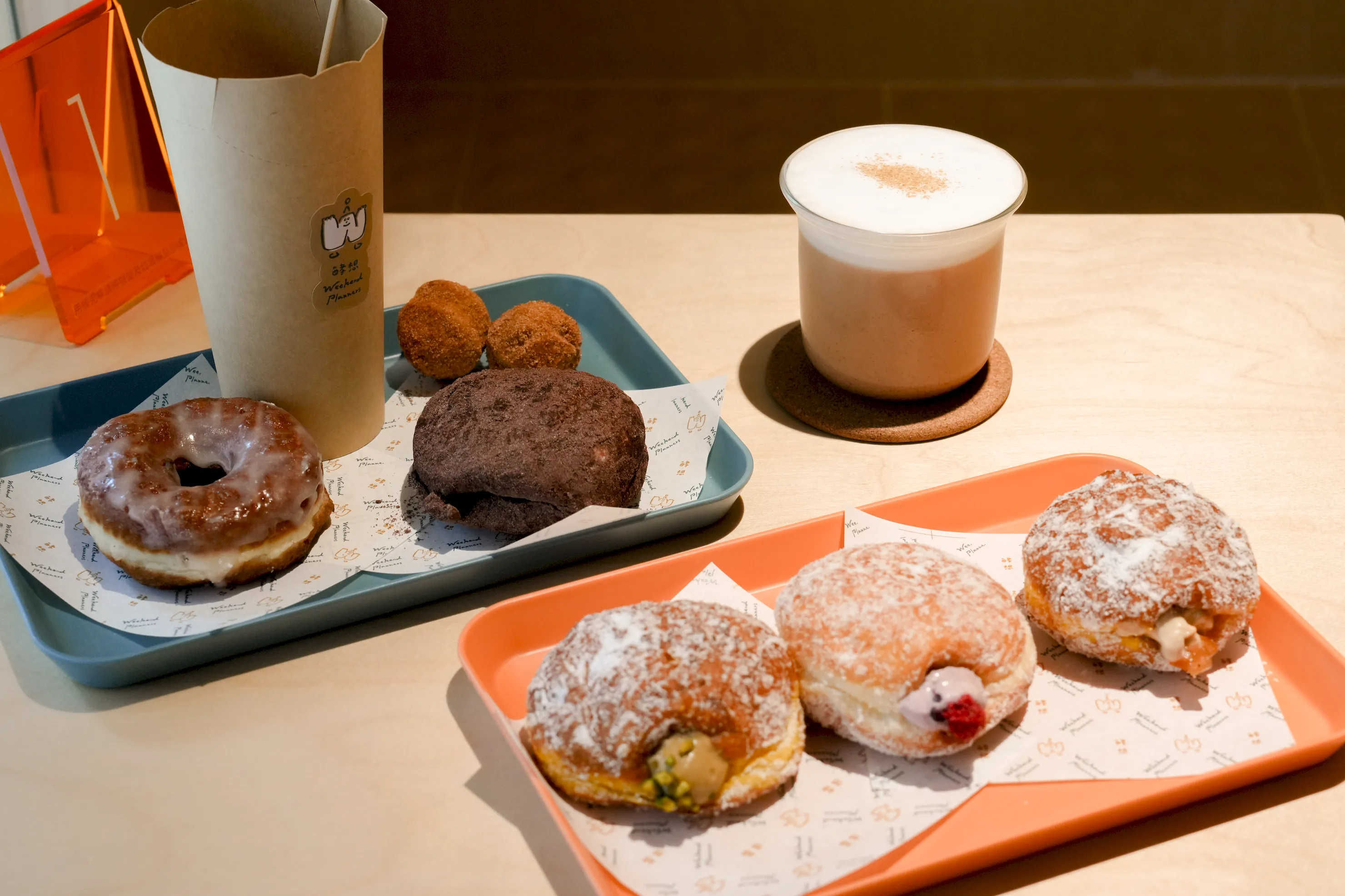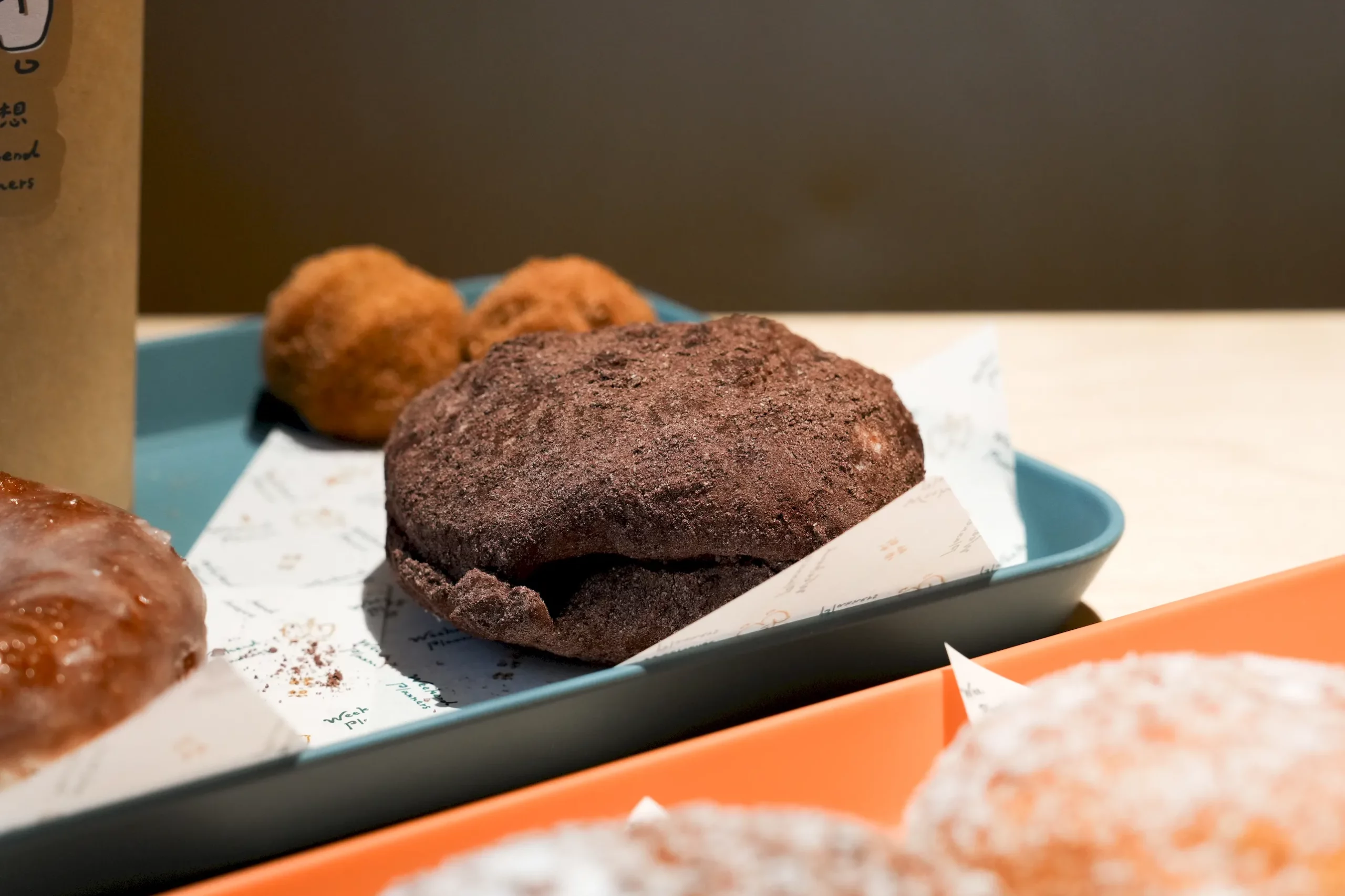 ▼這次我點了6款甜甜圈跟1杯飲品,接下來會發現甜甜圈的名稱都很特別,其實是店家依照口感上,彈性、鬆度、軟度的差異分成了五個系列,分別是帶有綜合口感的「洞滋」、Q彈口感的「怪獸」、外酥內軟的「老時髦」、柔軟的「貝特」,以及有帶有嚼勁的「咔滋」,能滿足各種不同喜好的需求。