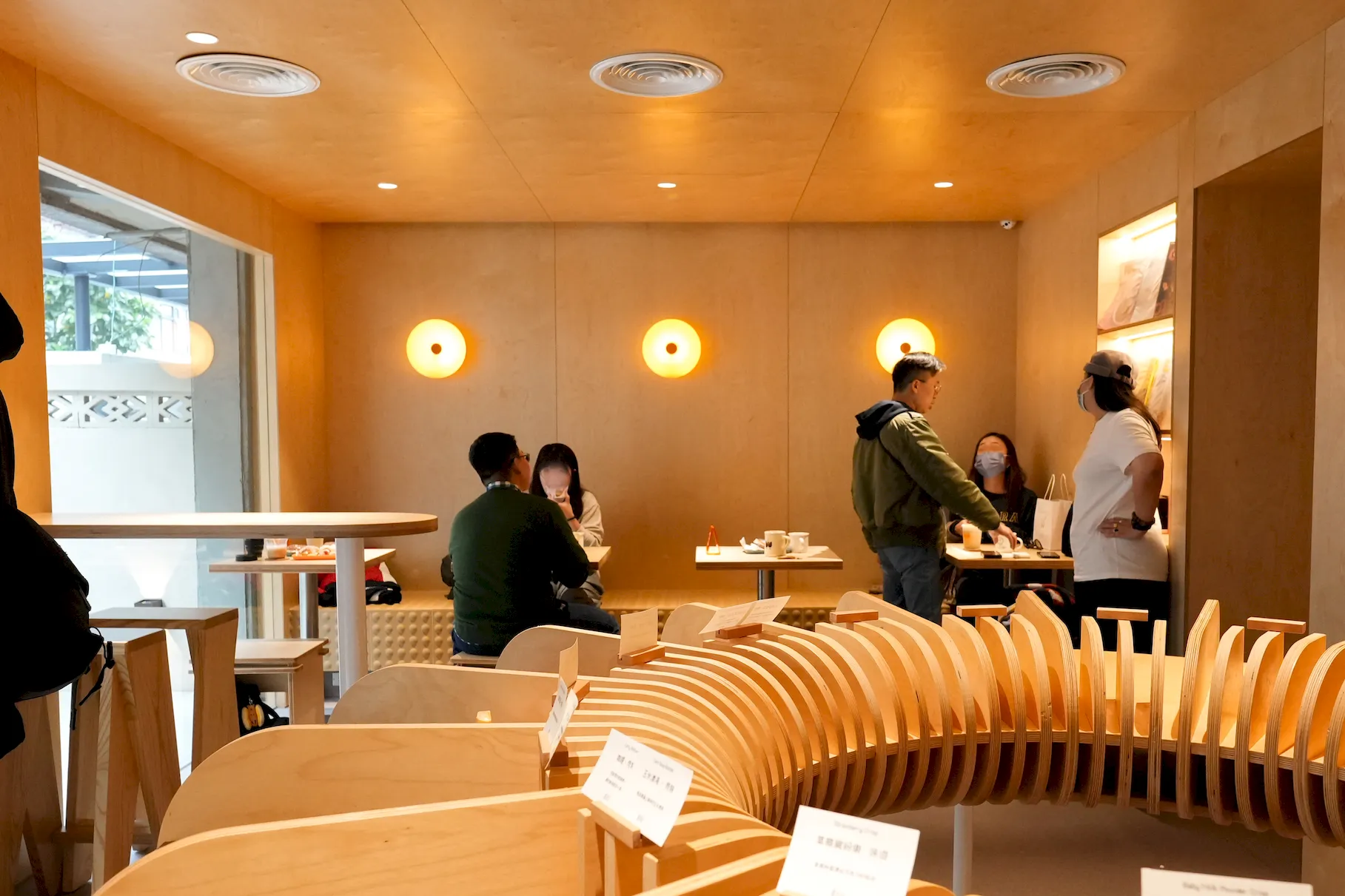 ▼門口左側是內用用餐區,牆面上的燈飾是甜甜圈造型,相當可愛!座位配置包含一張高腳桌與四席兩人座位,用餐空間不大,目測大約可容納8~10人。