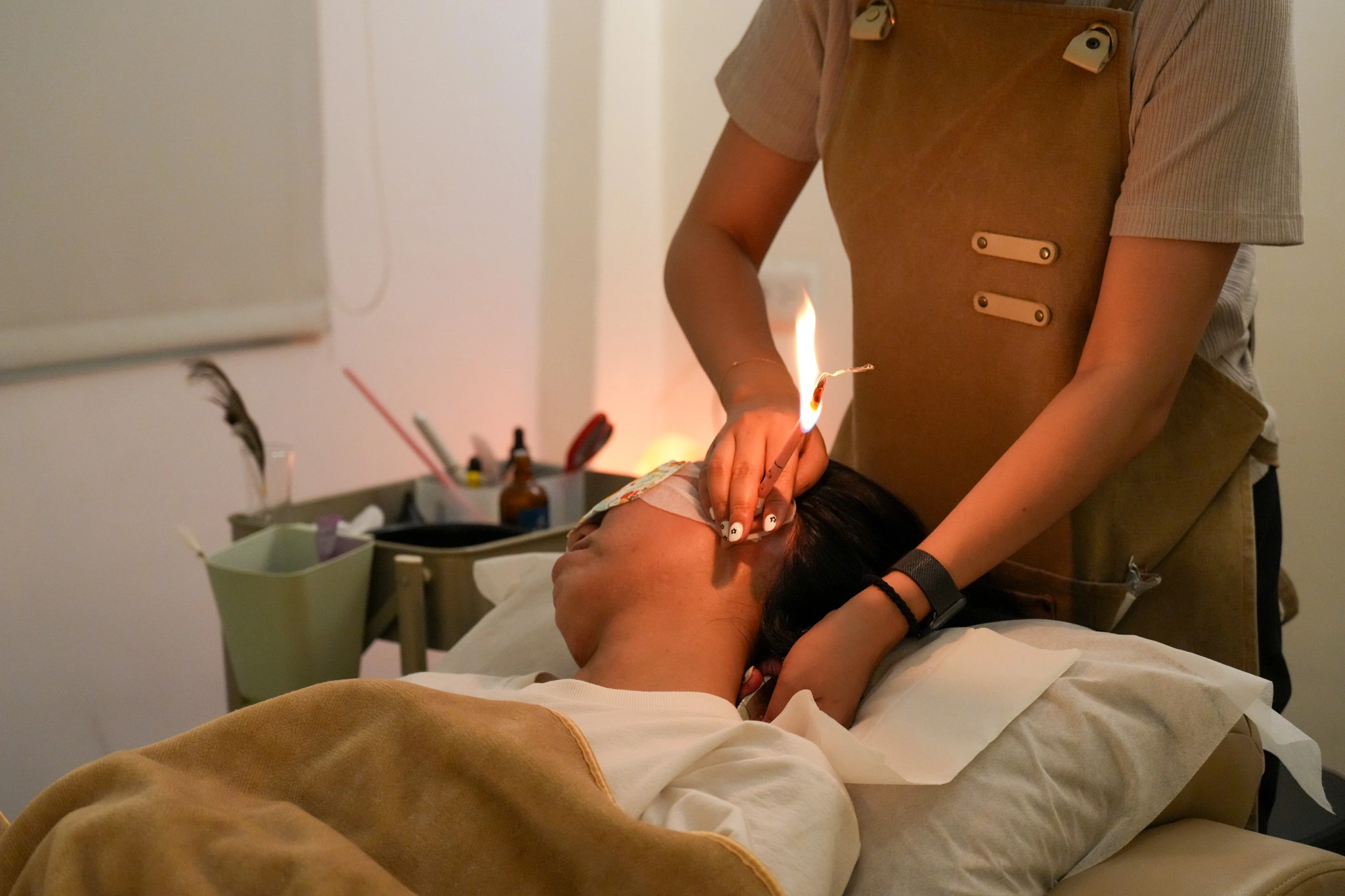 ▼眼療結束後,就是耳燭的部分,一開始會先稍微做肩頸按摩,然後點上耳燭,耳燭燃燒時採耳師會同時幫你按摩頭部,力道蠻足的,原本頭部感覺有千斤重,按完後輕盈許多。