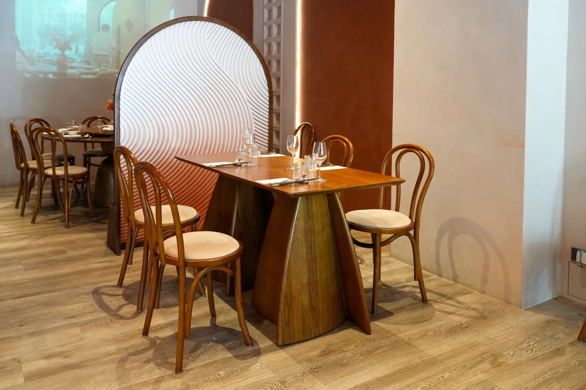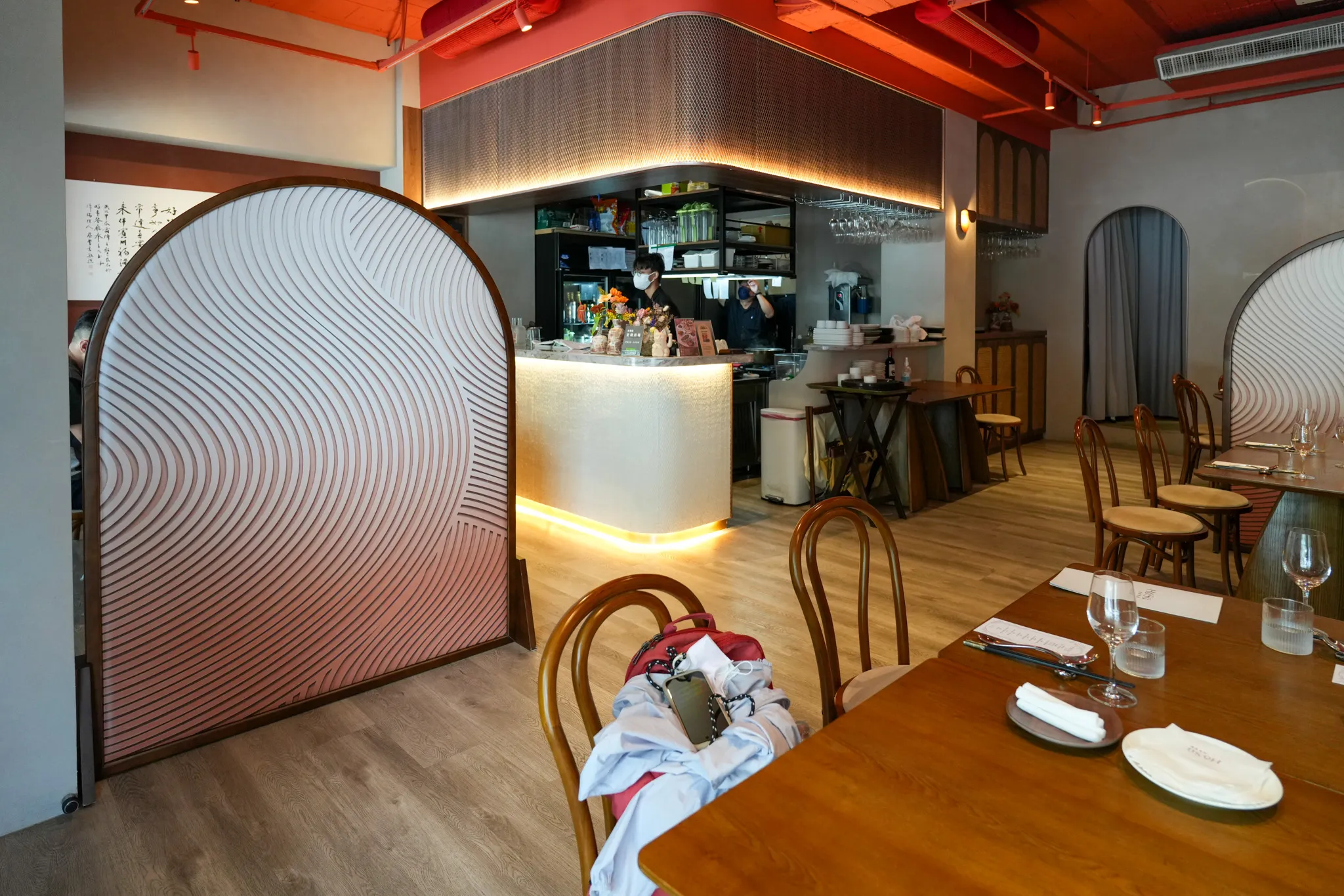 ▼店內裝潢以木質家具、地板等元素組成,整體走中式復古風格,和餐廳製作的新台菜風格餐點十分相符。