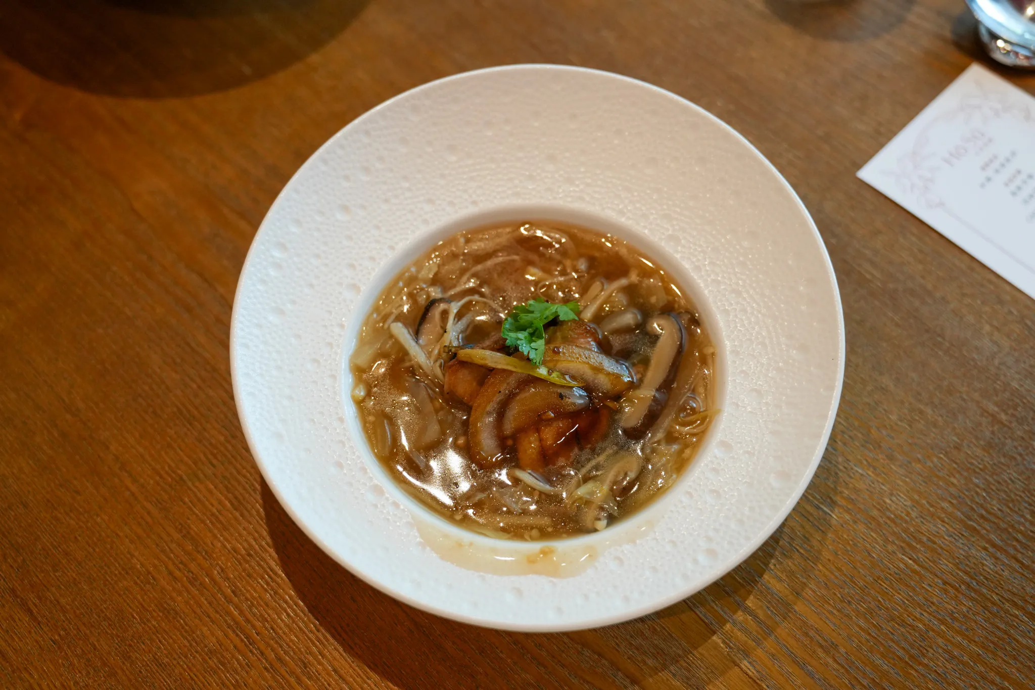 整體來說,我和朋友一致認為「好事餐廳」的餐點屬於新台菜料理,將當季食材融入傳統辦桌台菜中,打造耳目一新的味覺體驗,像是以肉骨茶為湯底,加入些許花椒提味的佛跳牆,和以往勾芡式的佛跳牆湯底相比輕盈許多,令人十分驚喜。