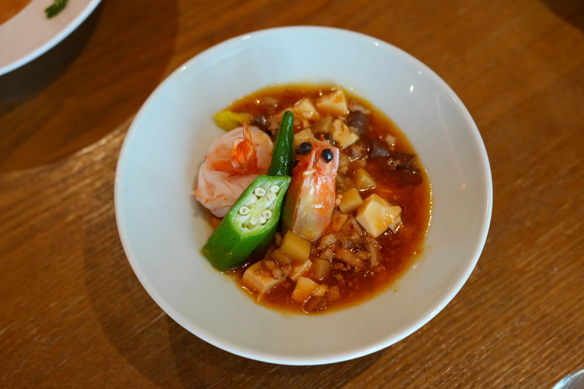 ▼使用新鮮海蝦搭配秋葵、娃娃菜、豆腐和豬血,味道蠻濃郁的,個人覺得辣度有到微辣,可能平時吃這道料理都會配飯,所以單吃覺得不太對味。