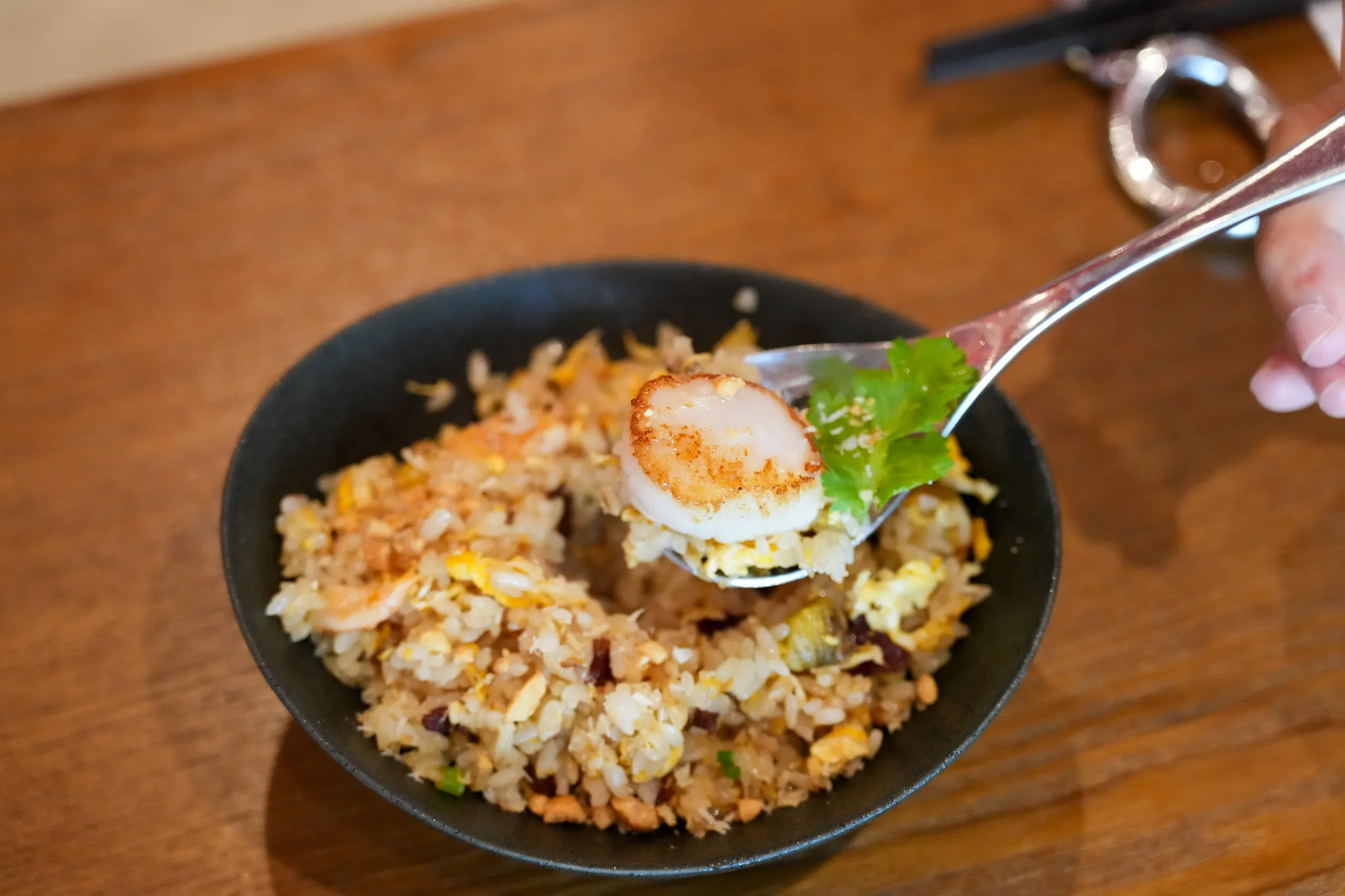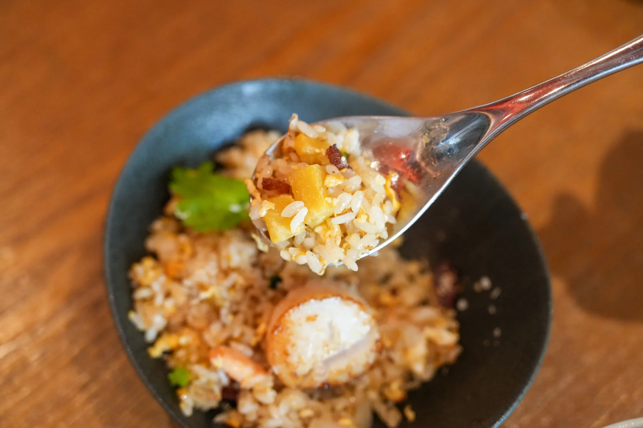 ▼其中米飯粒粒分明又帶點鍋氣,鳳梨的酸甜完全融進炒飯裡,吃起來超順口,干貝也很新鮮,每一口都很滿足。
