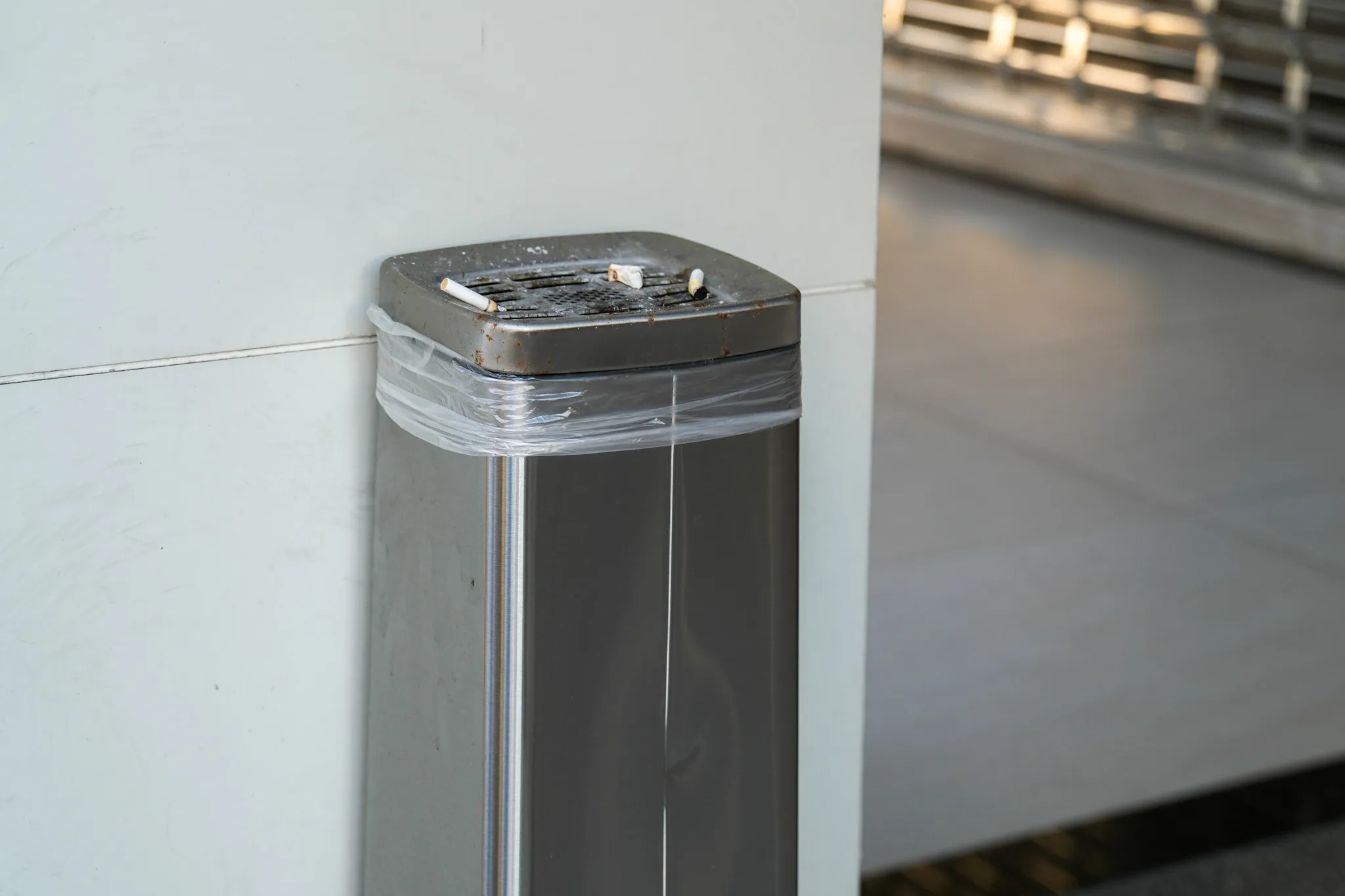 ▼此外,店家還貼心地在外面的騎樓提供一個帶有菸灰缸功能的垃圾桶,讓癮君子們有地方可以丟棄菸蒂,減少街道上的垃圾。