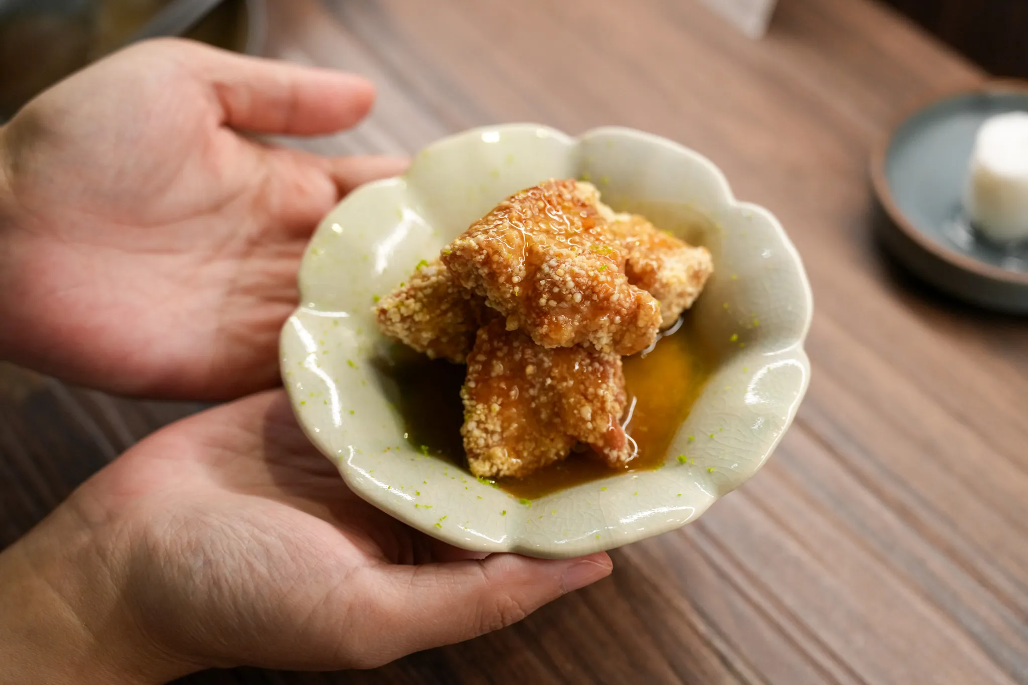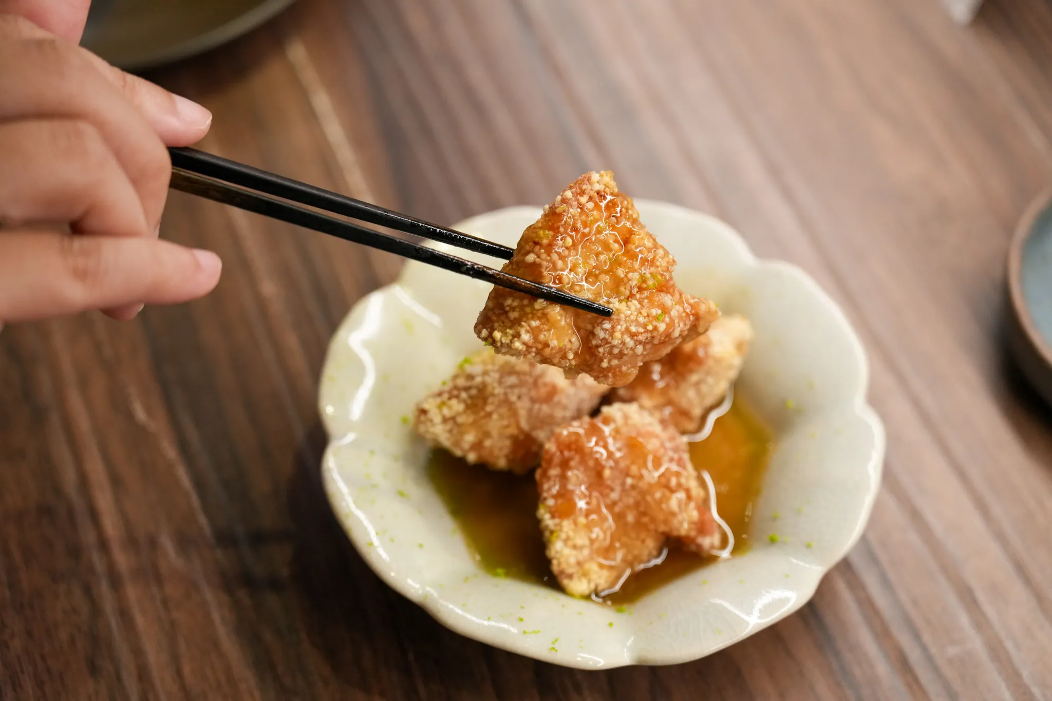 以無菜單燒鳥料理來說,「燒鳥庵」屬於中間價位,嚴選台灣雞肉做食材,並使用備長炭進行炭烤,除了能鎖住食材的精華,也不會讓客人身上殘留過多的食物味,能安心地享受美食。餐點的部分,個人最喜歡的是炸雞胸肉這道料理,主廚使用自製的蘋果高湯醬做底,搭配炸得酥脆的雞胸肉,吃起來酸酸甜甜,不會有過多的粉感,且雞胸肉的熟度很剛好,不會過老或過柴,令人印象深刻。
