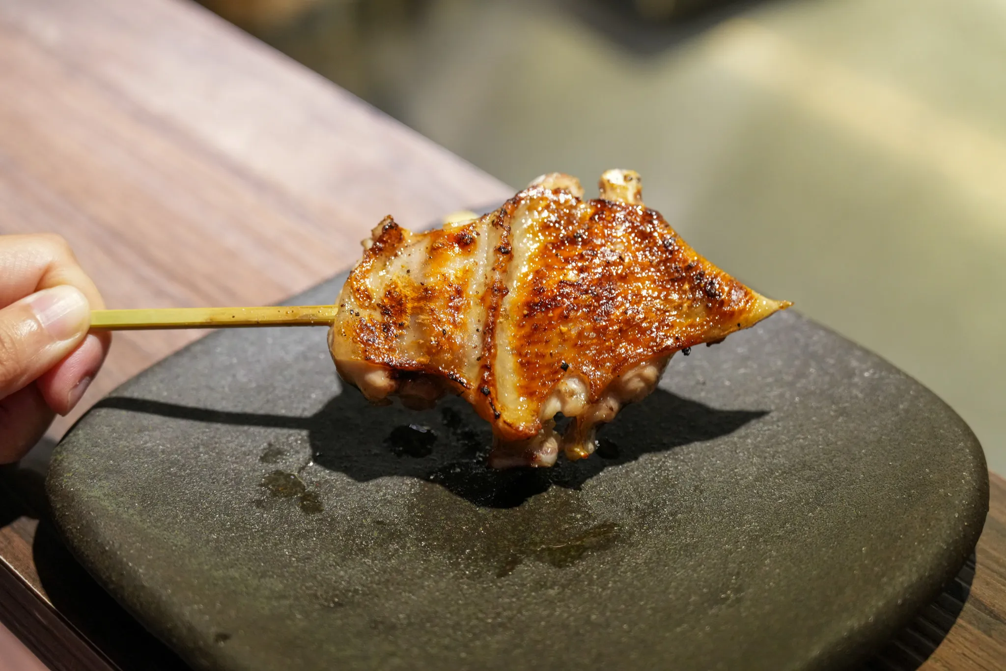 ▼雞頸肉烤到外皮微脆,咬下去肉質緊實又帶點Q感,油香剛剛好,不膩口。