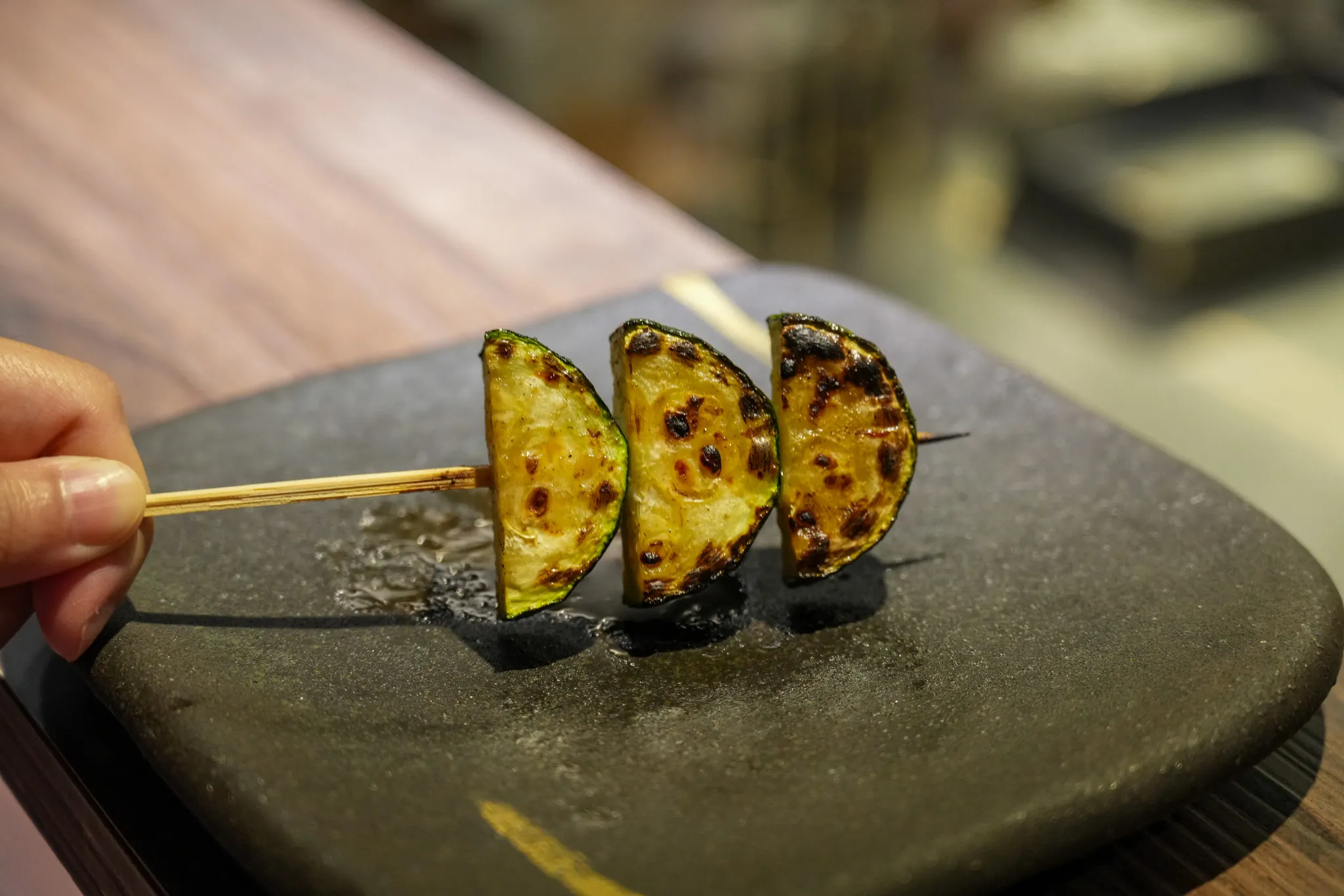 ▼櫛瓜有特別挑選過,烤完後不會苦,並保留蔬菜的鮮甜及水份,口感清爽多汁,襯托出櫛瓜自然的甘甜,越吃越涮嘴。