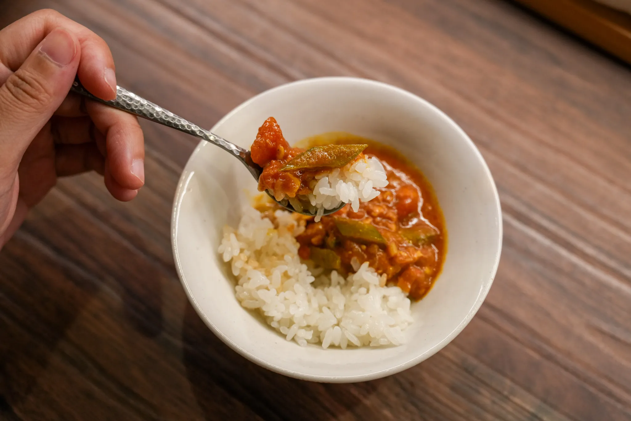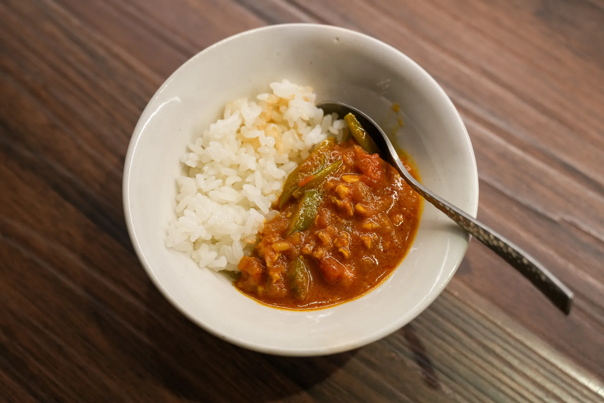 ▼用番茄、肉末、甜豆和咖哩組合而成,吃起來很像義大利肉醬麵的味道,還有帶點淡淡的中藥味,很有特色,番茄和咖哩融合得很好,連不吃番茄的朋友都可以接受。