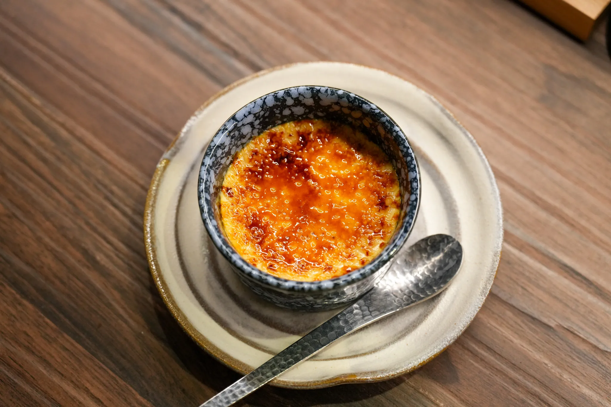 ▼主廚會現場用火槍烤出香脆的焦糖,布蕾本身偏軟,像優格一樣入口即化,不會太硬,整體甜度剛好,可以吃到焦糖微苦又甜的層次感,做為餐後甜點非常療癒。