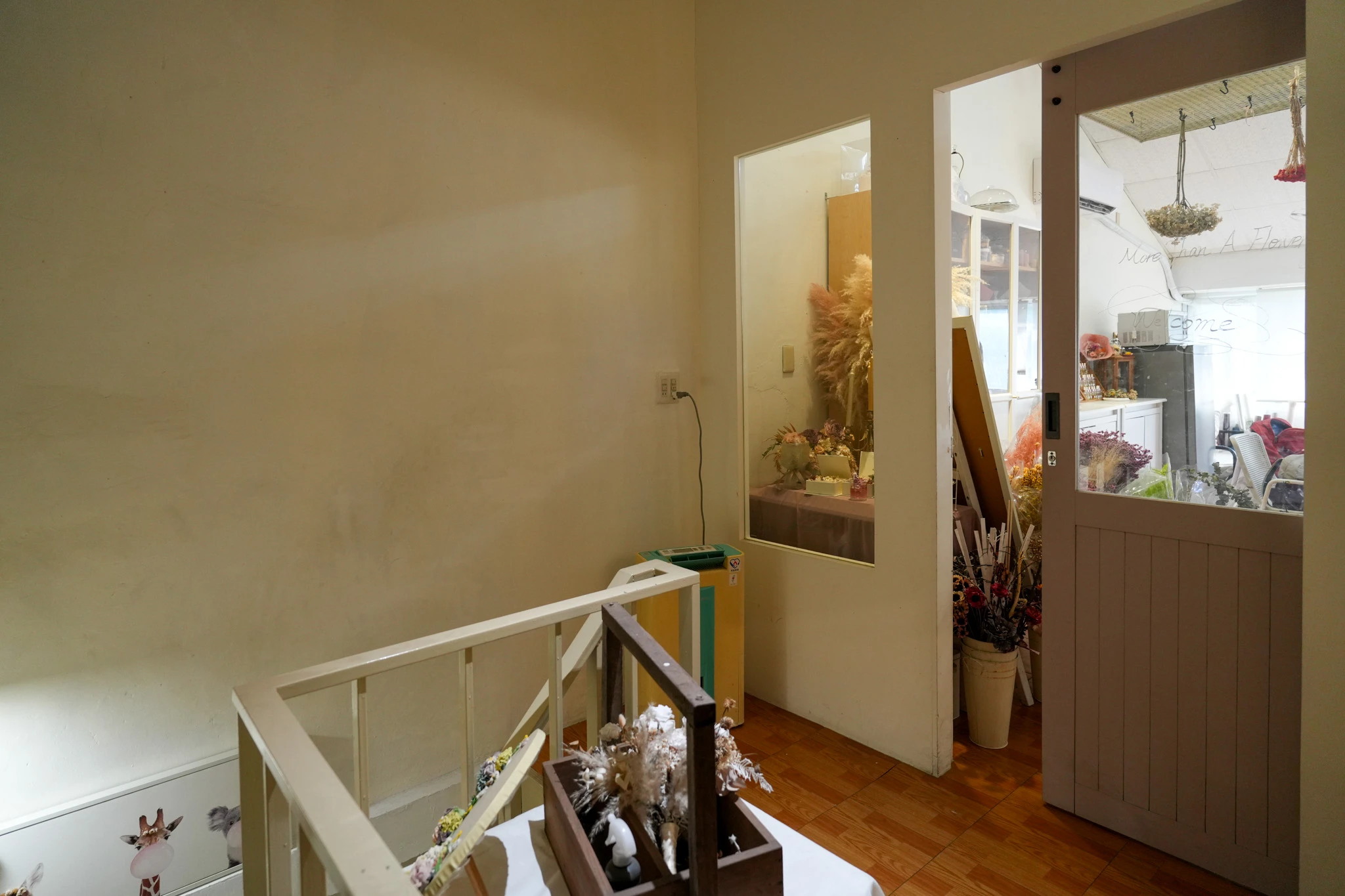 ▼「不只是花實驗室」的工作室隱藏在市中一路上的透天厝二樓,一樓則是老師丈夫開的咖啡店,騎樓也有零星的座位讓客人可以坐下來休息。
