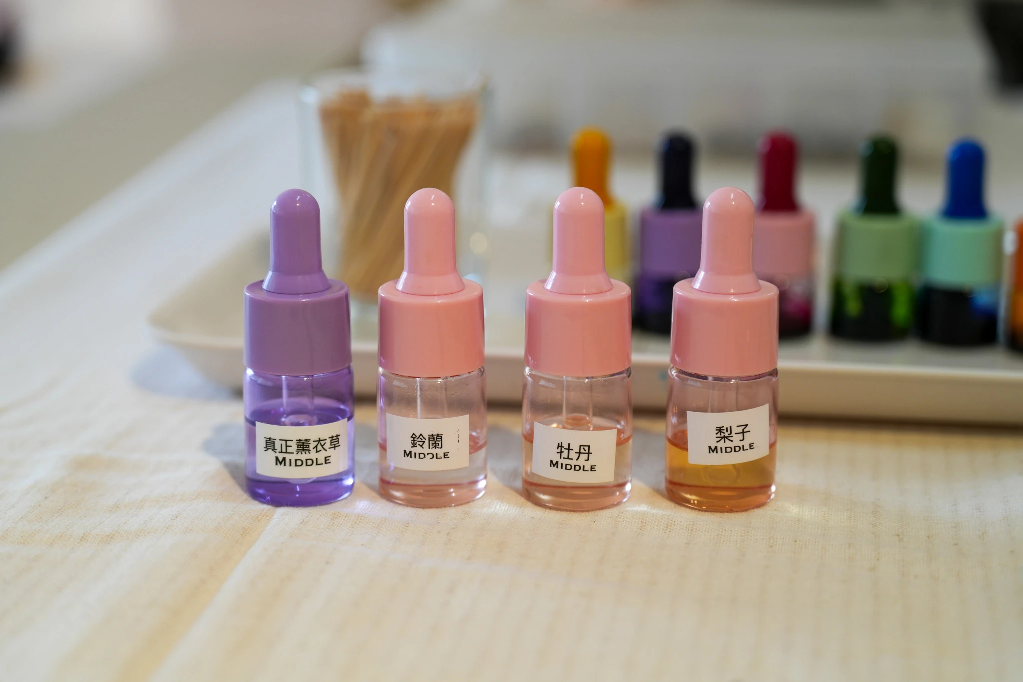 ▼首先會先進行香氣選擇,總共有20種不同的香味讓你試聞,並且依照前、中、後調的順序幫你排放好,上方也都會標示好名稱,讓你可以邊聞邊記錄自己喜歡的味道。