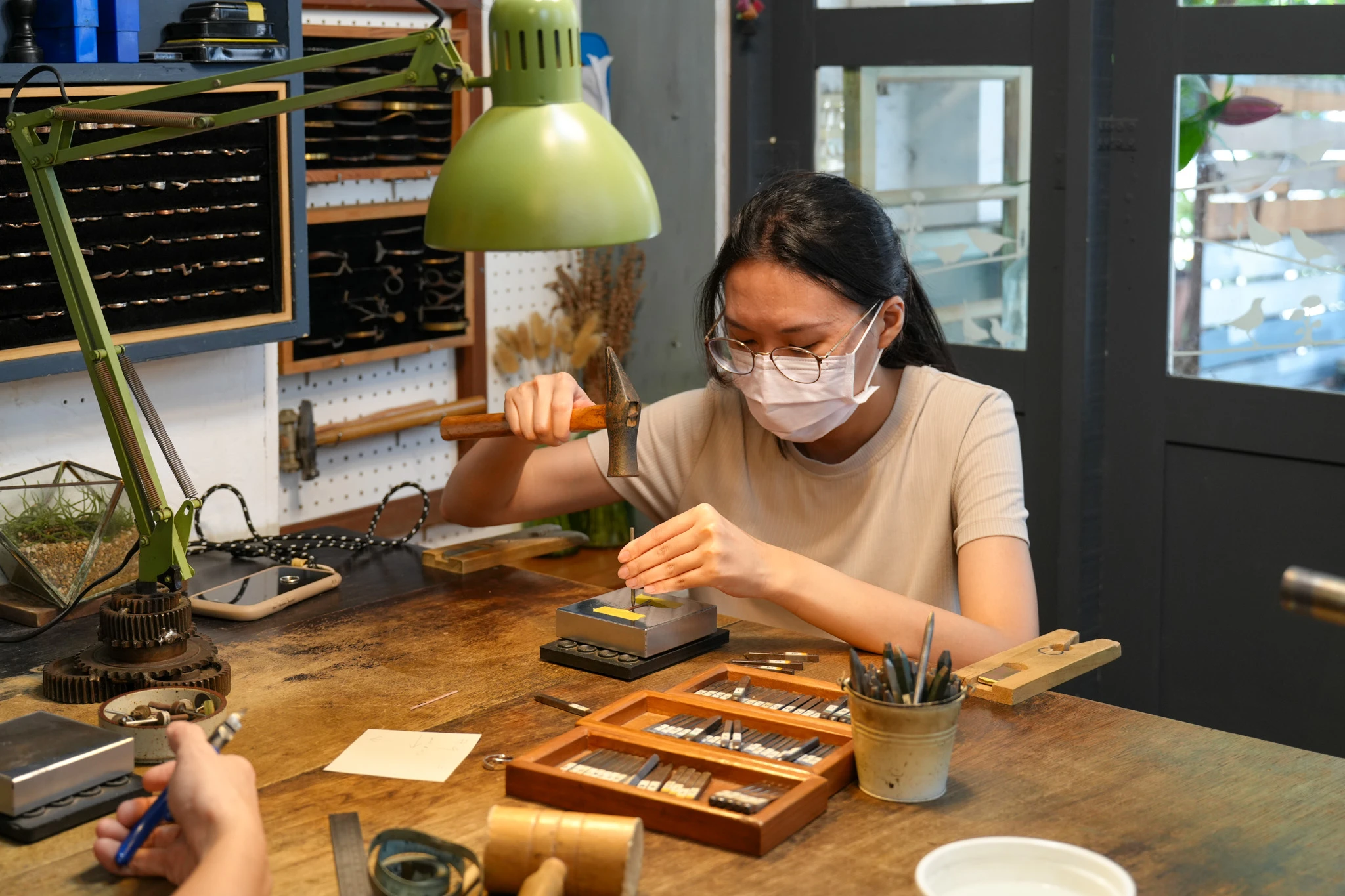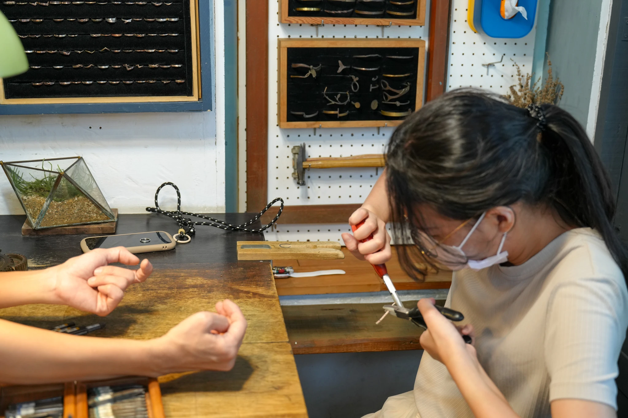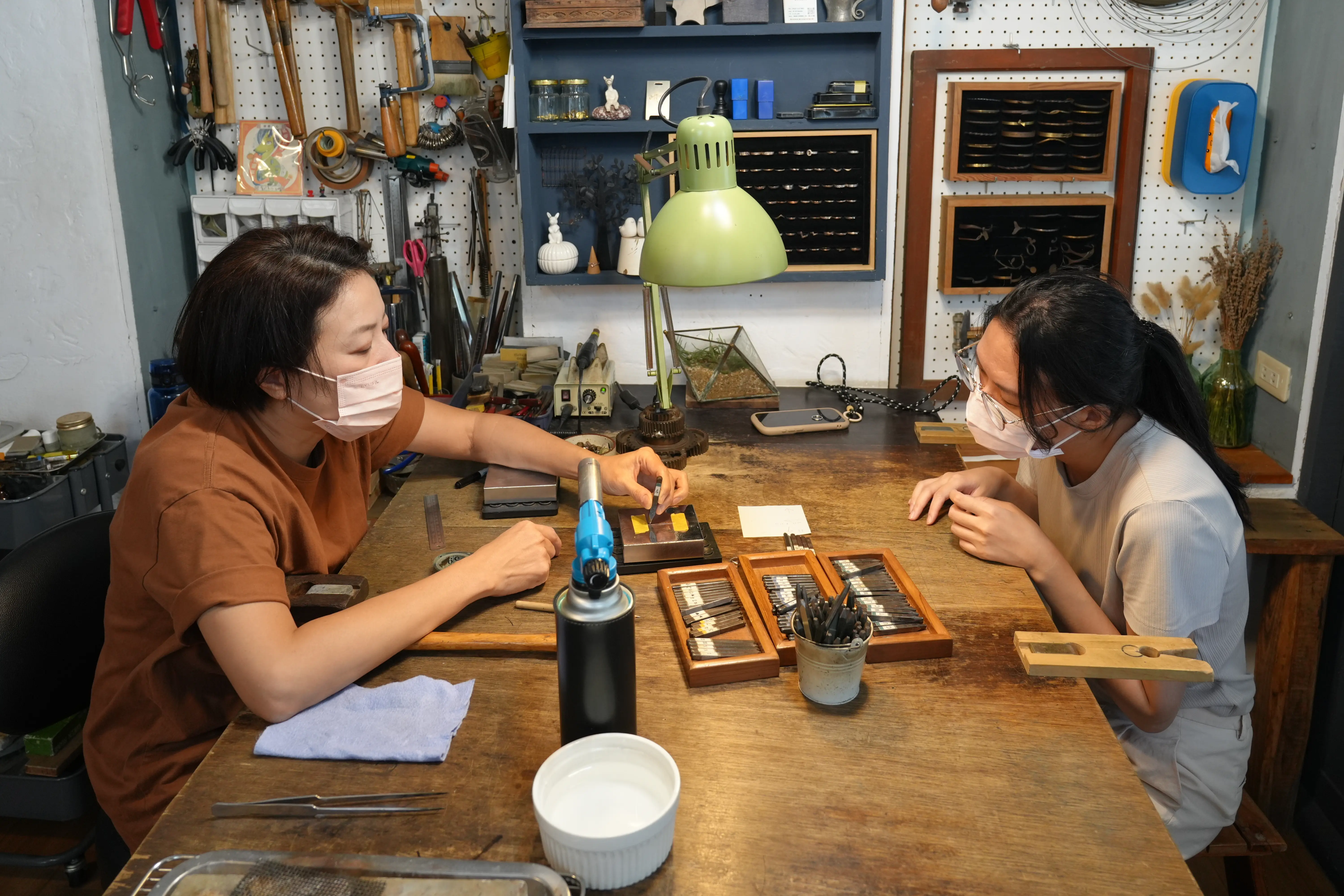 「小洋樓」在高雄經營多年,是許多人體驗金工的首選工作室,除了戒指外,工作室也有手環、項鍊及鑰匙圈等品項可以選擇,如果有想自己設計的部分也可以跟老師討論,是新手和老手都能玩得很開心的體驗課程。體驗課程採一個時段僅接一組學員的方式,不必擔心需要和陌生人一起上課,老師會一對一指導所有的步驟,講解清晰易懂,不過在需要用到火的部分基本上都是由老師代勞,和其他體驗課程相比,少了一點體驗的樂趣。