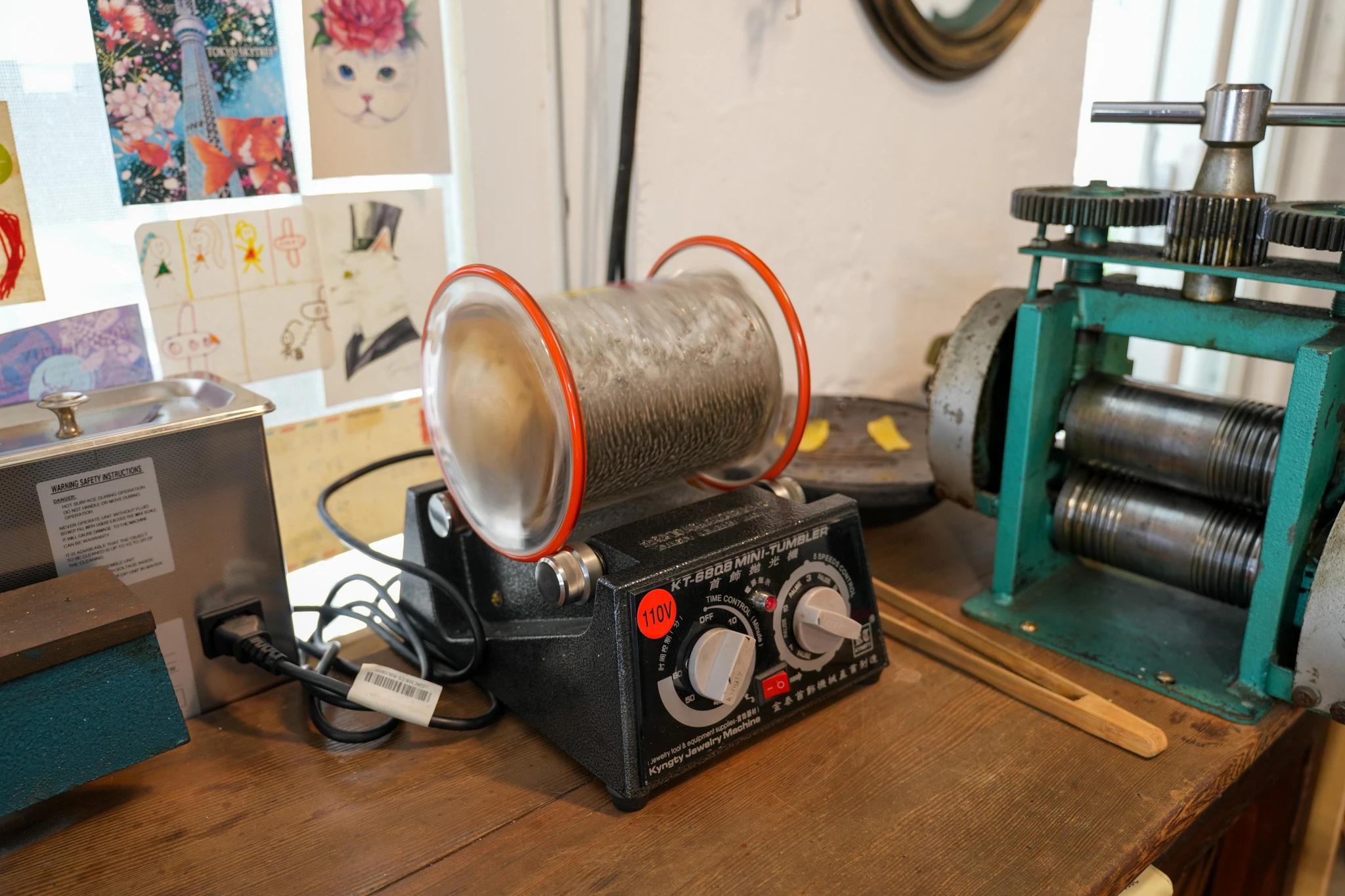 ▼打磨完後,就會把戒指放進拋光機內做拋光,拿出來就會是漂亮又有質感的成品。
