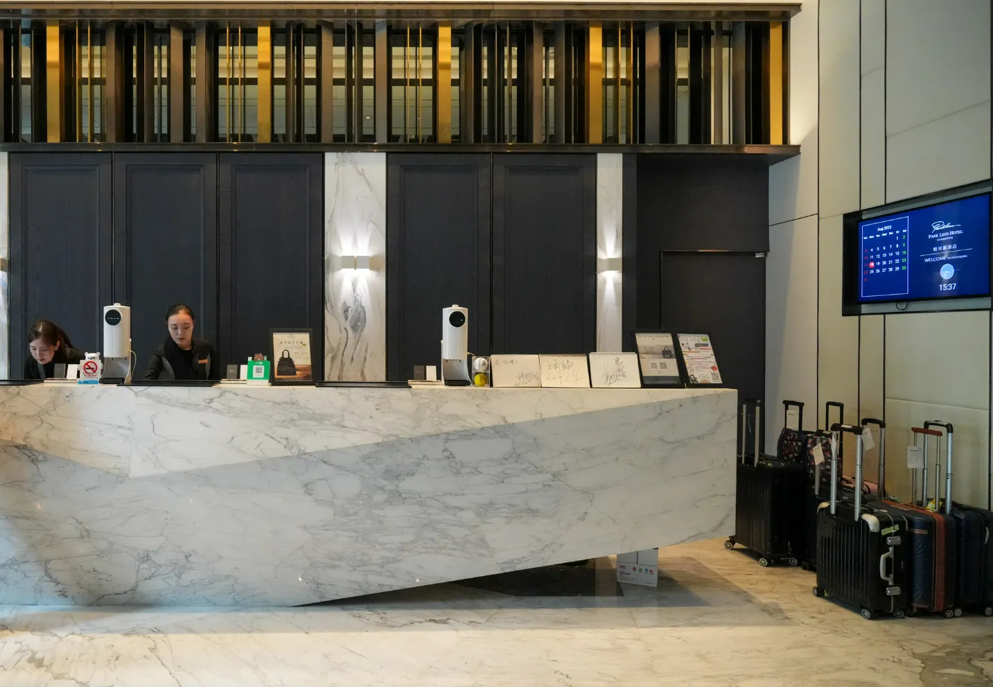 ▼這次我們同樣是先從高鐵站搭Uber抵達飯店,一下車就會有服務人員幫忙拉開大門,十分貼心,入內後會引導你到左側的櫃台進行行李寄放。