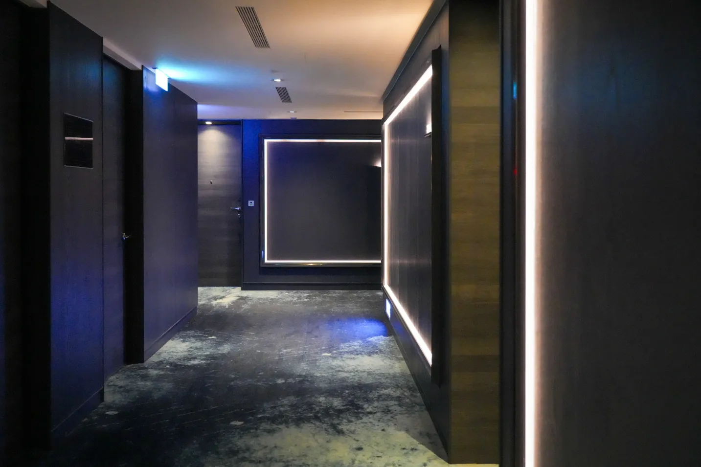 ▼我們這次入住的是8樓的「標準雙床房」,樓層空間設計以灰黑色系搭配燈光條為主,給人一種沉穩內斂的感覺。