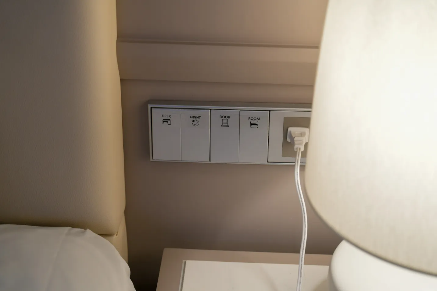 不過在硬體設備方面仍有些可改進之處,像是房內採用中央空調,但夜晚睡覺時冷氣氣流會反彈吹向床頭,多少影響睡眠品質;小夜燈的設計雖然方便,但兩盞燈共用同一個開關,無法單獨控制,若全開又顯得過亮,最後只好關閉全暗,如果習慣開著微光入睡的旅客,建議可自行攜帶小夜燈或眼罩會更為舒適。