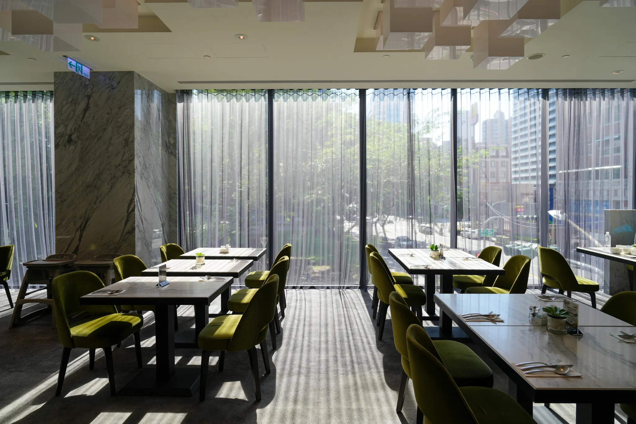▼二樓的餐廳同樣不大,大多是四人桌,靠窗的位置能看到綠意盎然的公園,還能享受陽光沐浴,放鬆愉快的享用早餐。