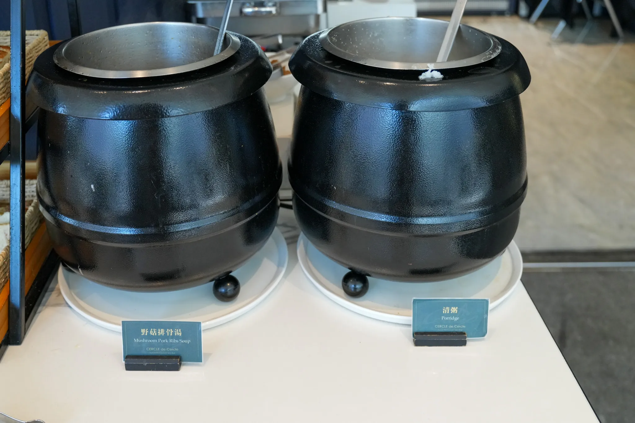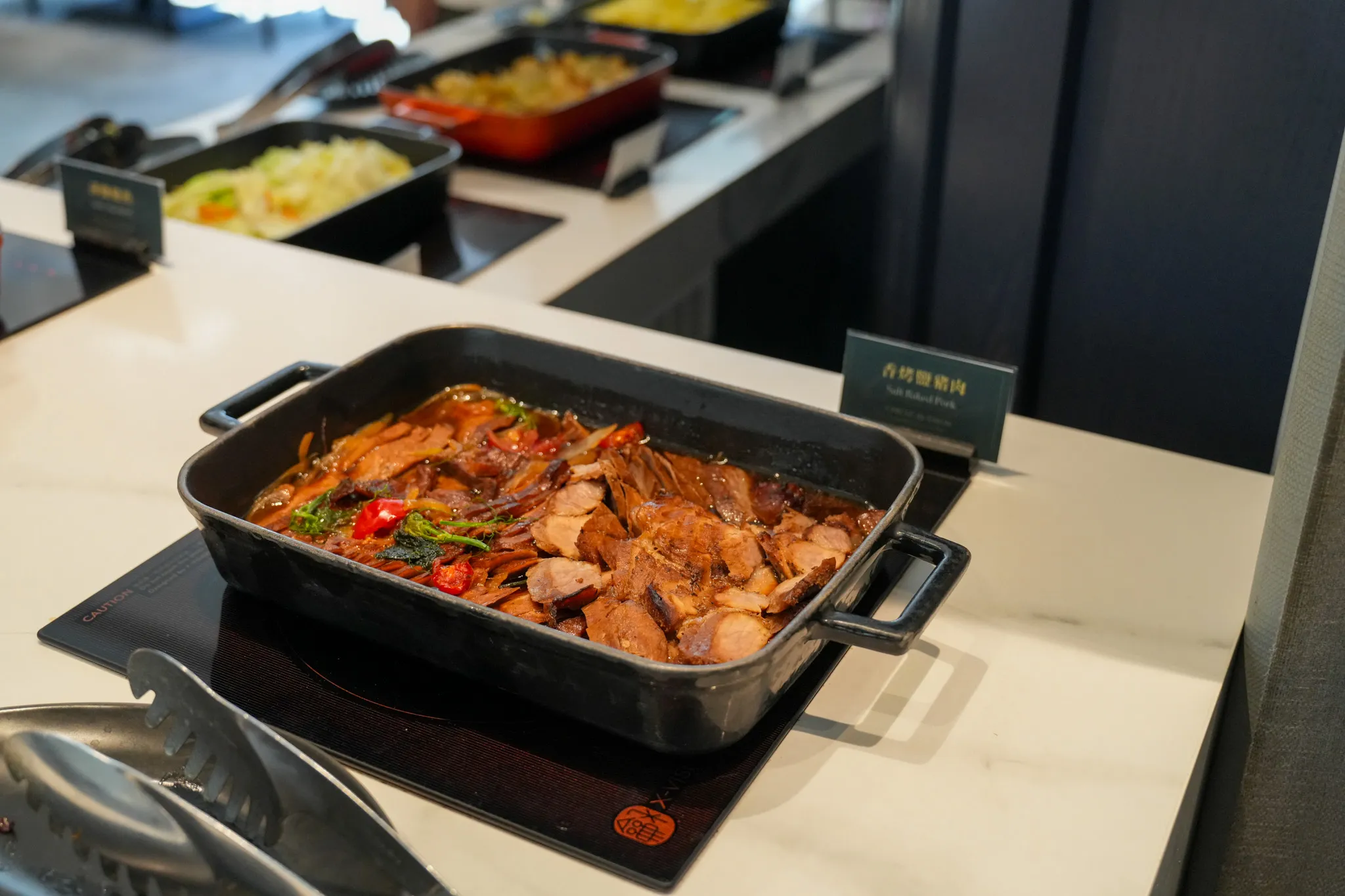 ▼早餐種類基本上該有的都有,熱食的部分有提供鹽烤豬肉、白粥、野菇排骨湯、基礎的炸物等。