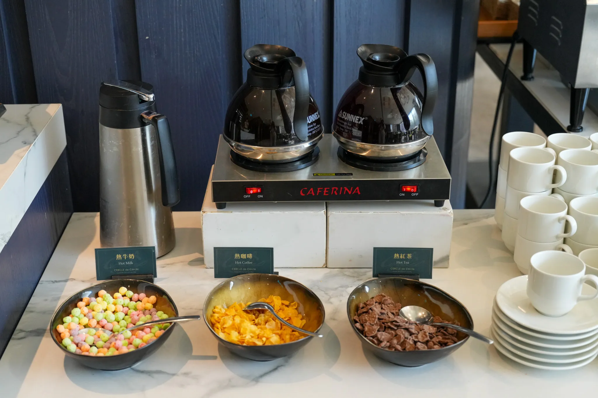 ▼簡單的麥片、熱牛奶、熱紅茶等也有提供,不過就只有三種麥片可以選,種類較少。
