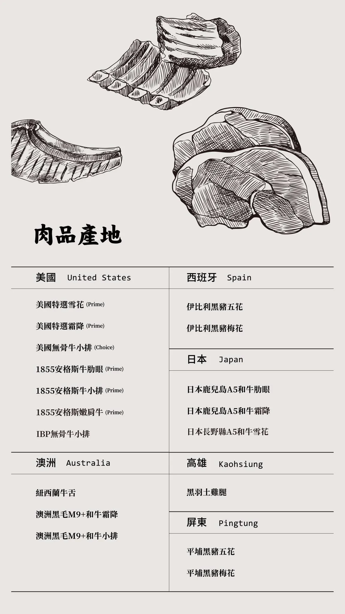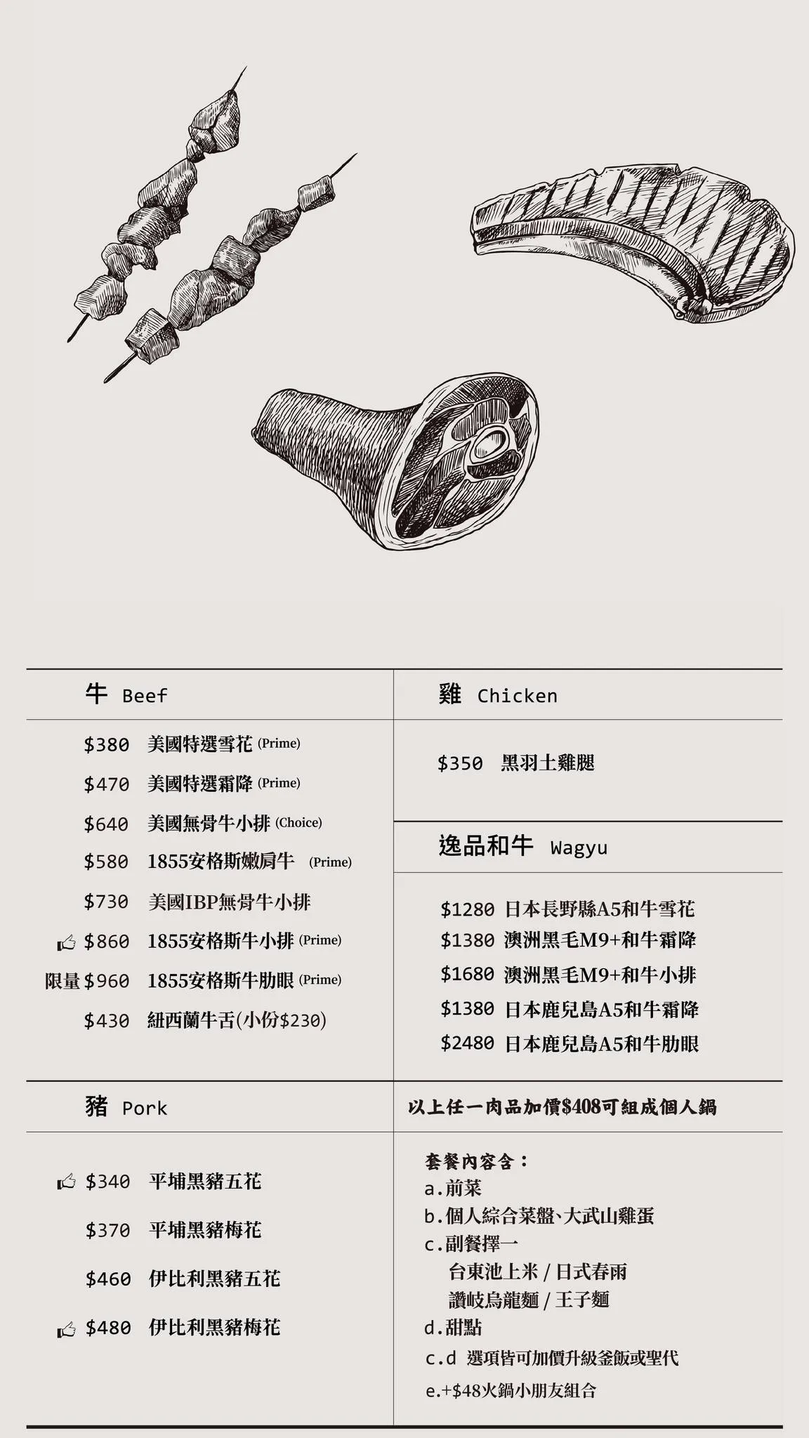 肉品:安格斯嫩肩牛 / 伊比利豬梅花