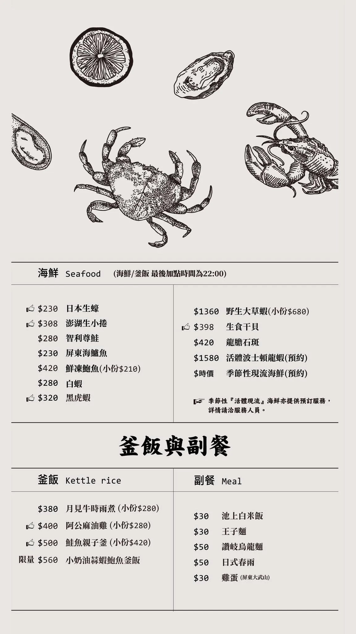 | 三位都喜歡 | 手工花枝漿(加蝦漿)、阿公麻油雞釜飯 |