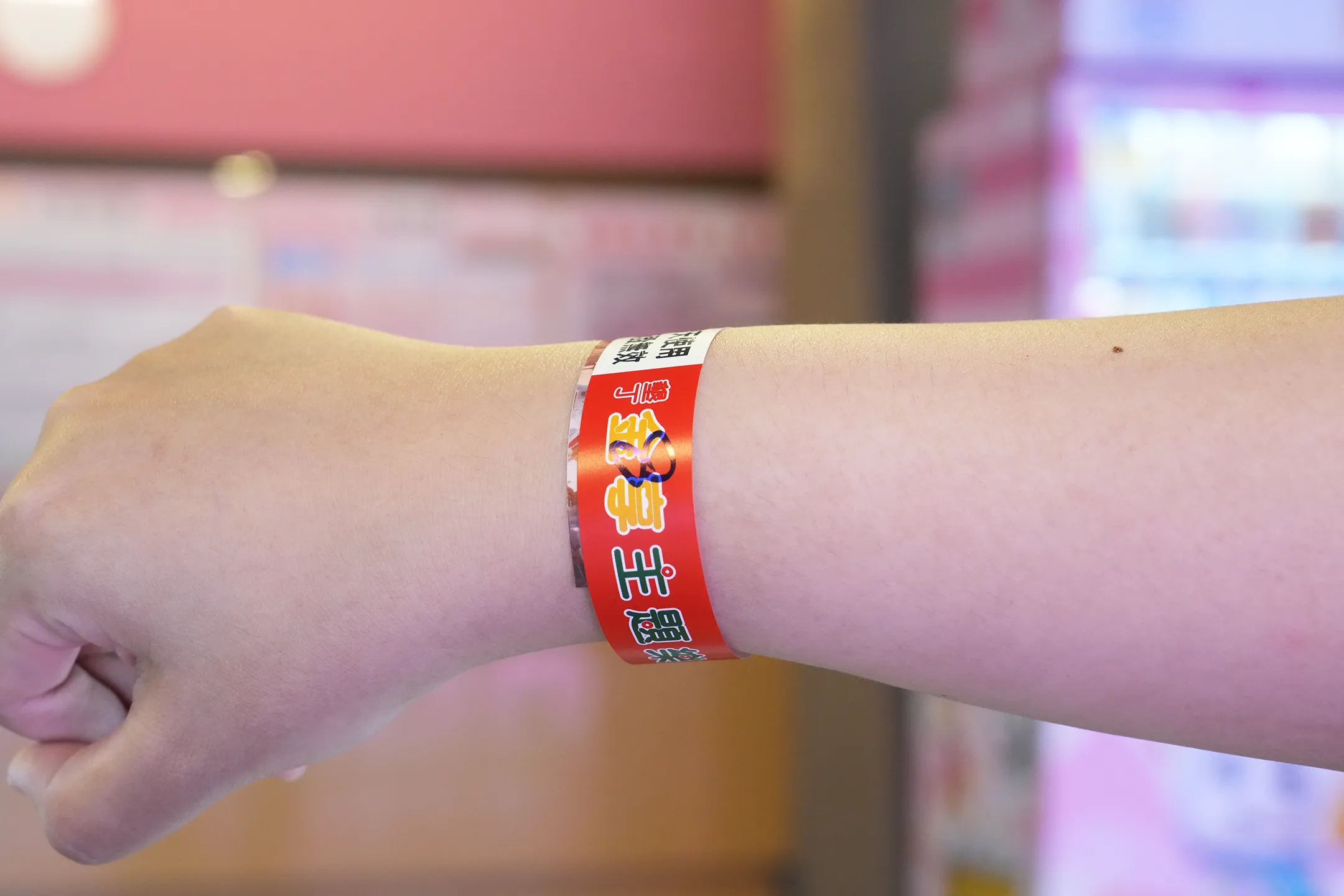 ▼買票後,店員會幫你帶上手環,這個手環就是您在園區內的通行證。無論進出任何遊樂設施或用餐區域,工作人員都會核對手環以確認您的入場資格。