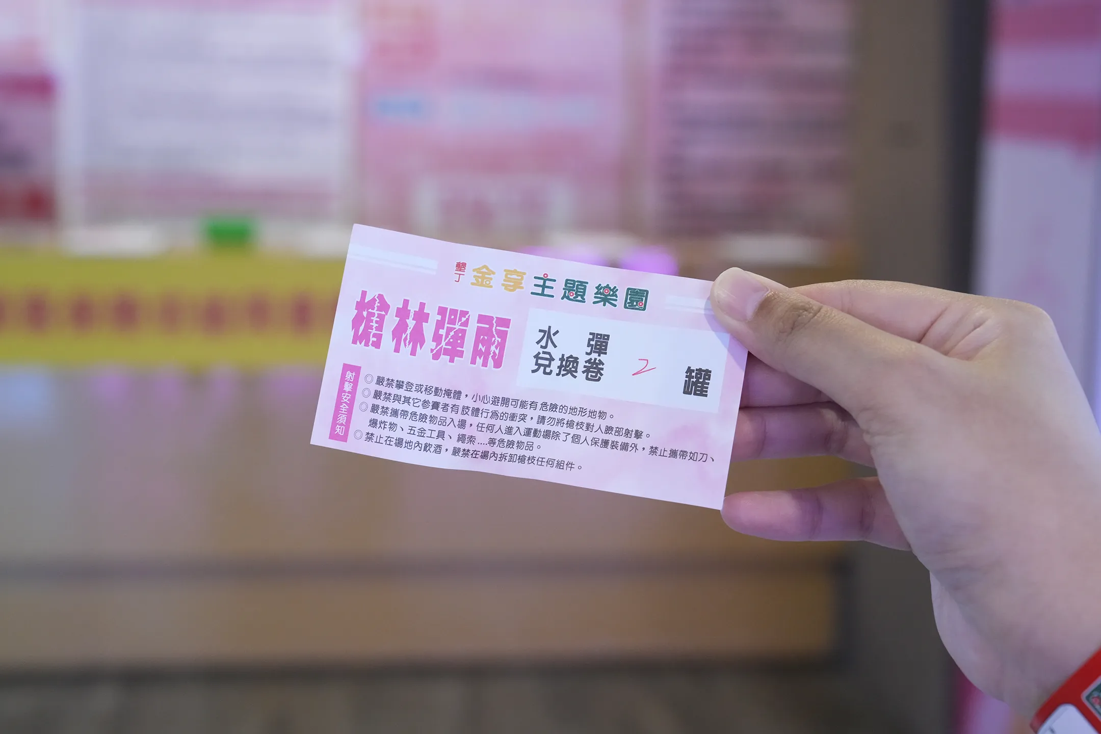 ▼其中一項遊樂設施「槍林彈雨」有遊玩次數限制,每人給一瓶水彈,由於這一區不用拖鞋,剛好我們抵達的時候剛好沒人在玩,店員就建議我們先進去玩。