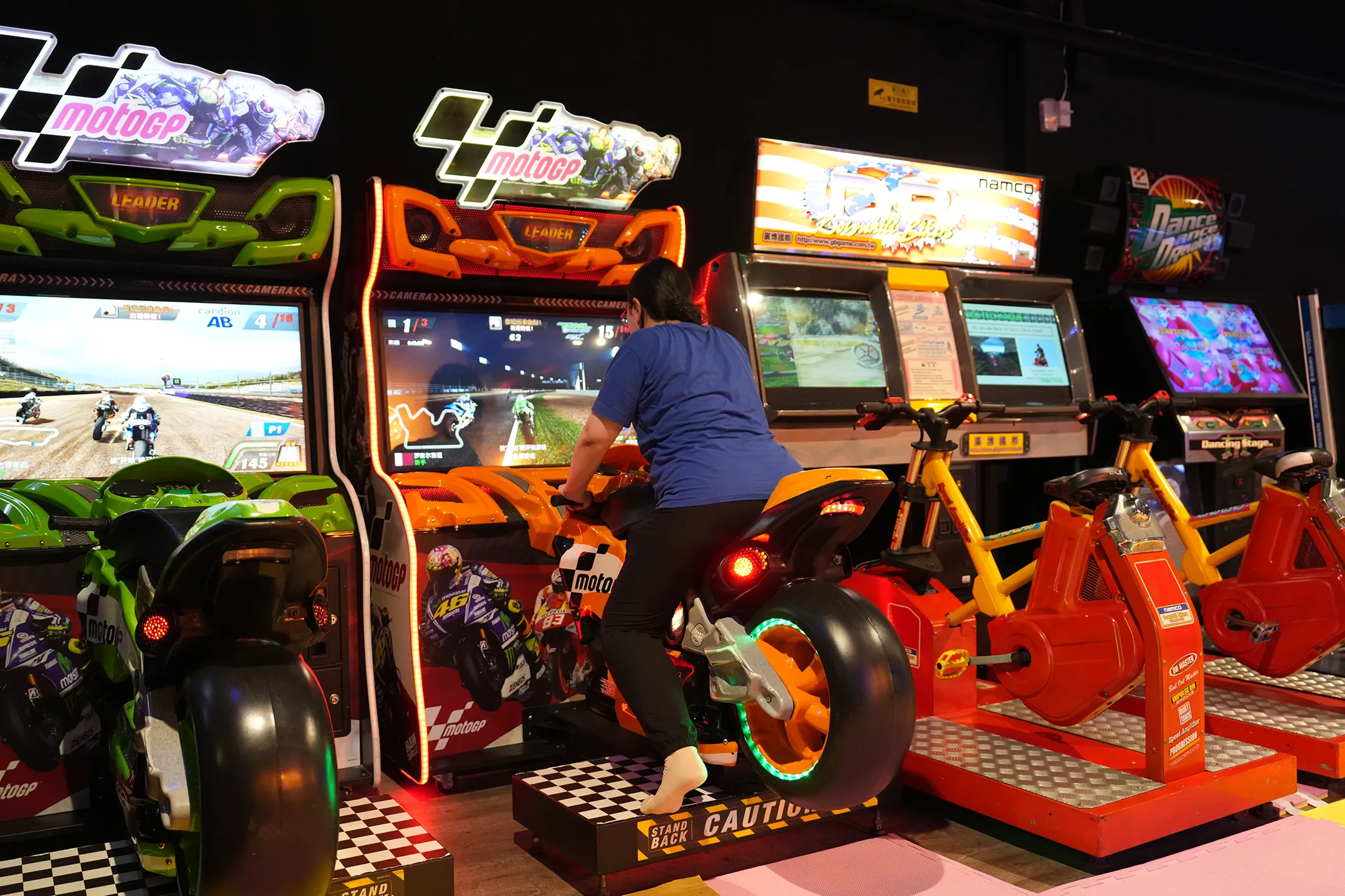 ▼店內也設有多款常見的電子遊樂設施,包括刺激的機車競速遊戲、考驗投籃技巧的籃球機、以及能展現舞技的跳舞機,太鼓達人等經典機台。