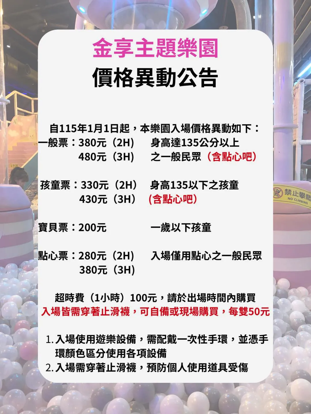 ▼「金享主題樂園」從2026年1月1日最新票價。