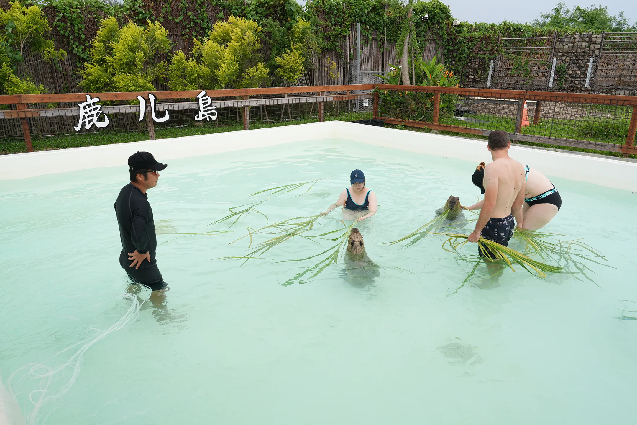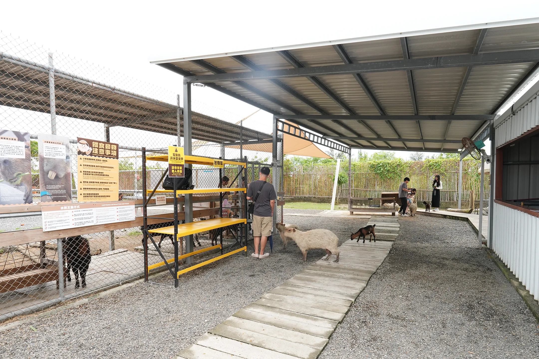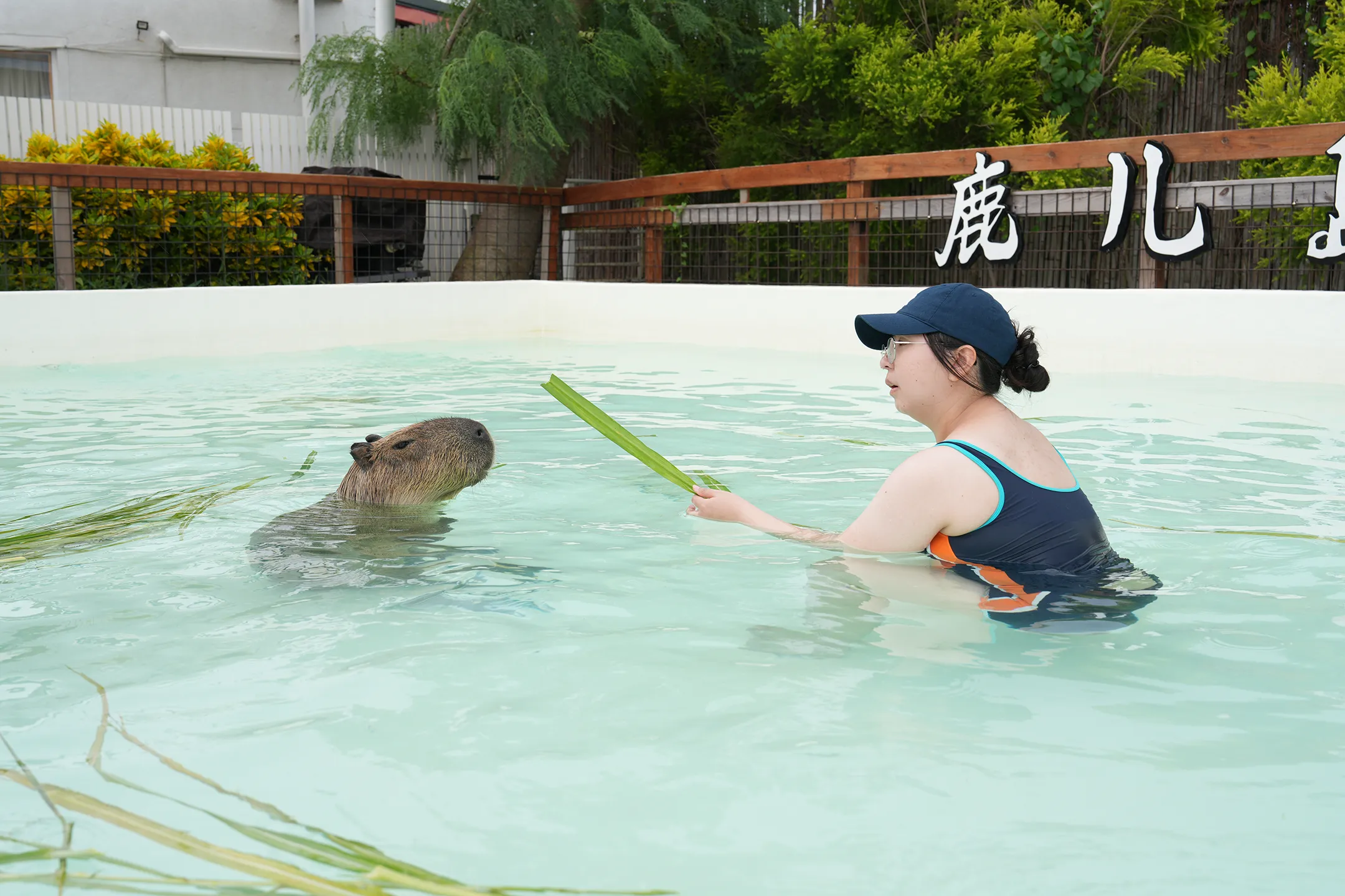 ▼來到水豚共游區域,四周皆設有圍欄設施。這些圍欄不僅保護著水豚的安全與隱私,同時也維護著遊客的人身安全,讓互動體驗既溫馴又放心。