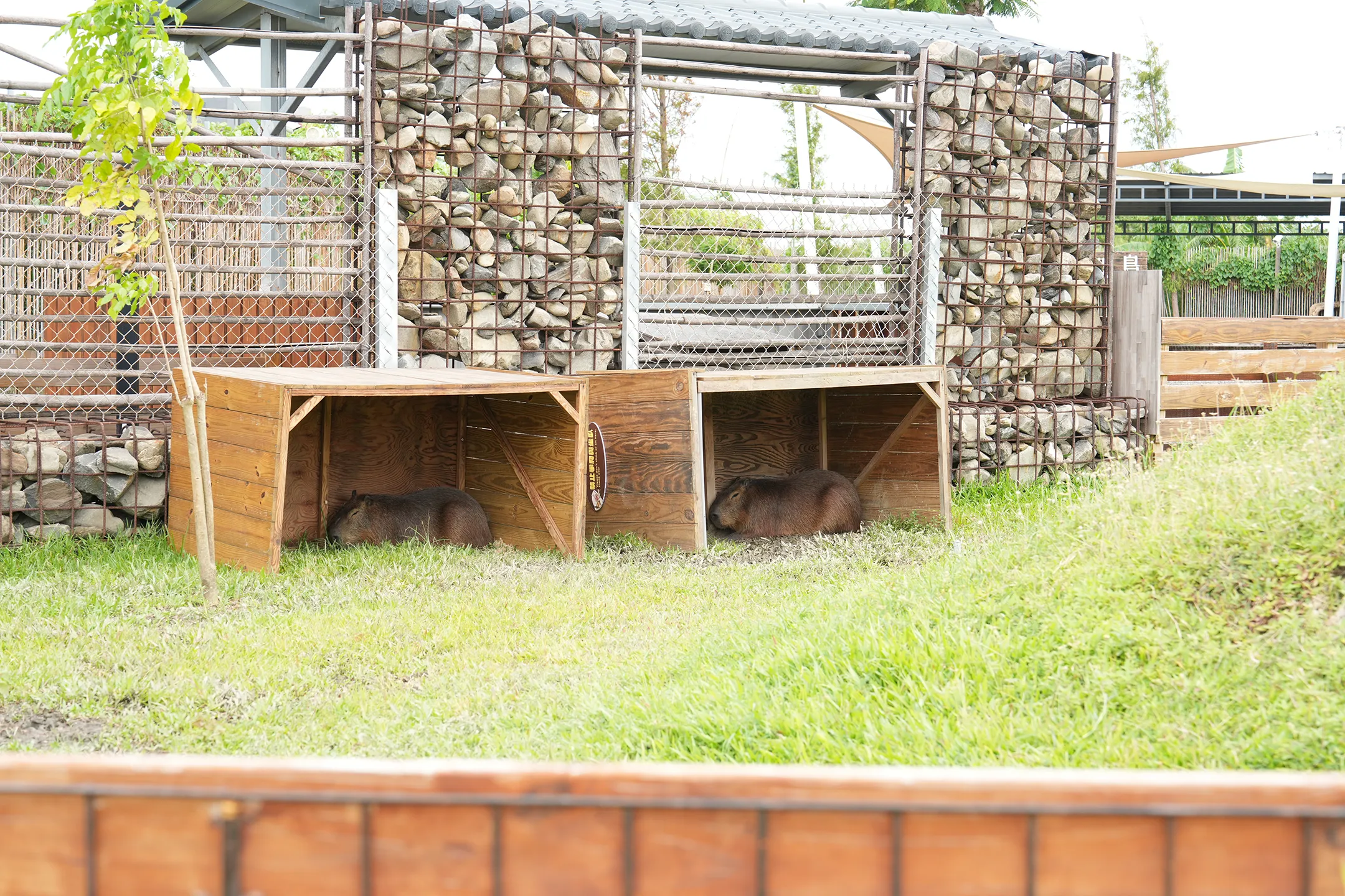 ▼水豚區可以看到水豚們窩在小木屋裡面睡覺,真的太療癒可愛啦。