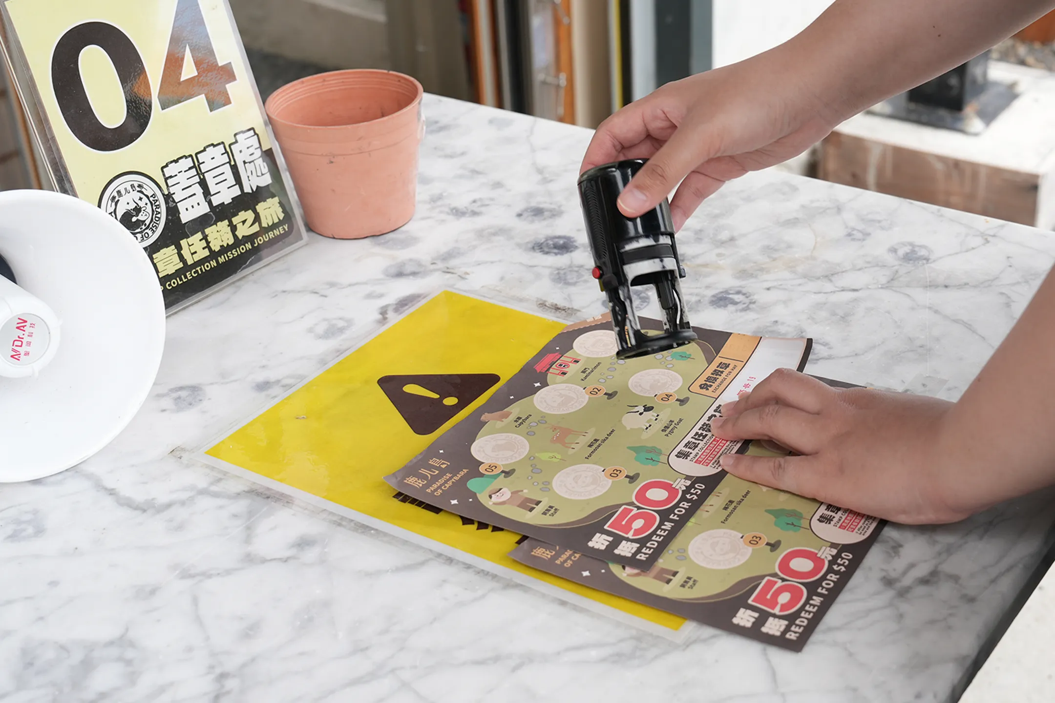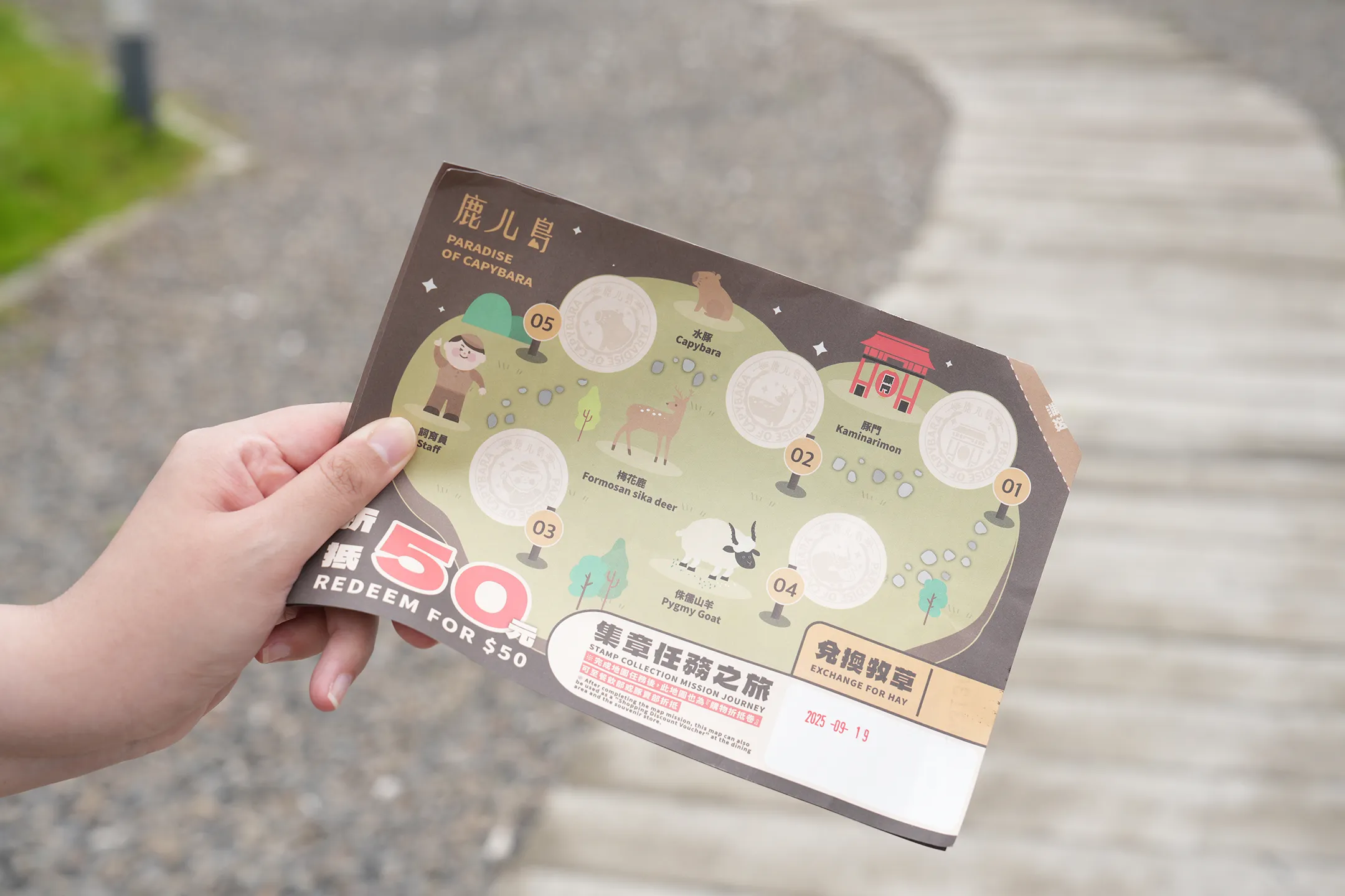 ▼購票的時候會給一張集點紙,前往園區中各個蓋章區,集滿5個章就可以兌換50元的折抵券。