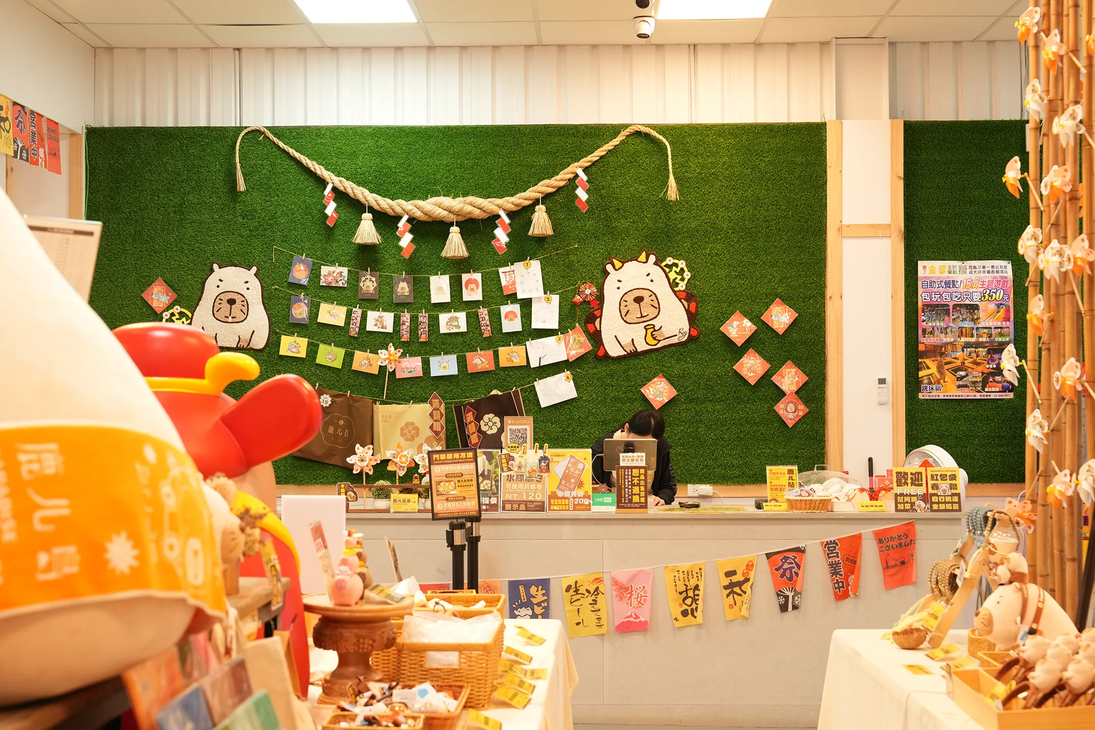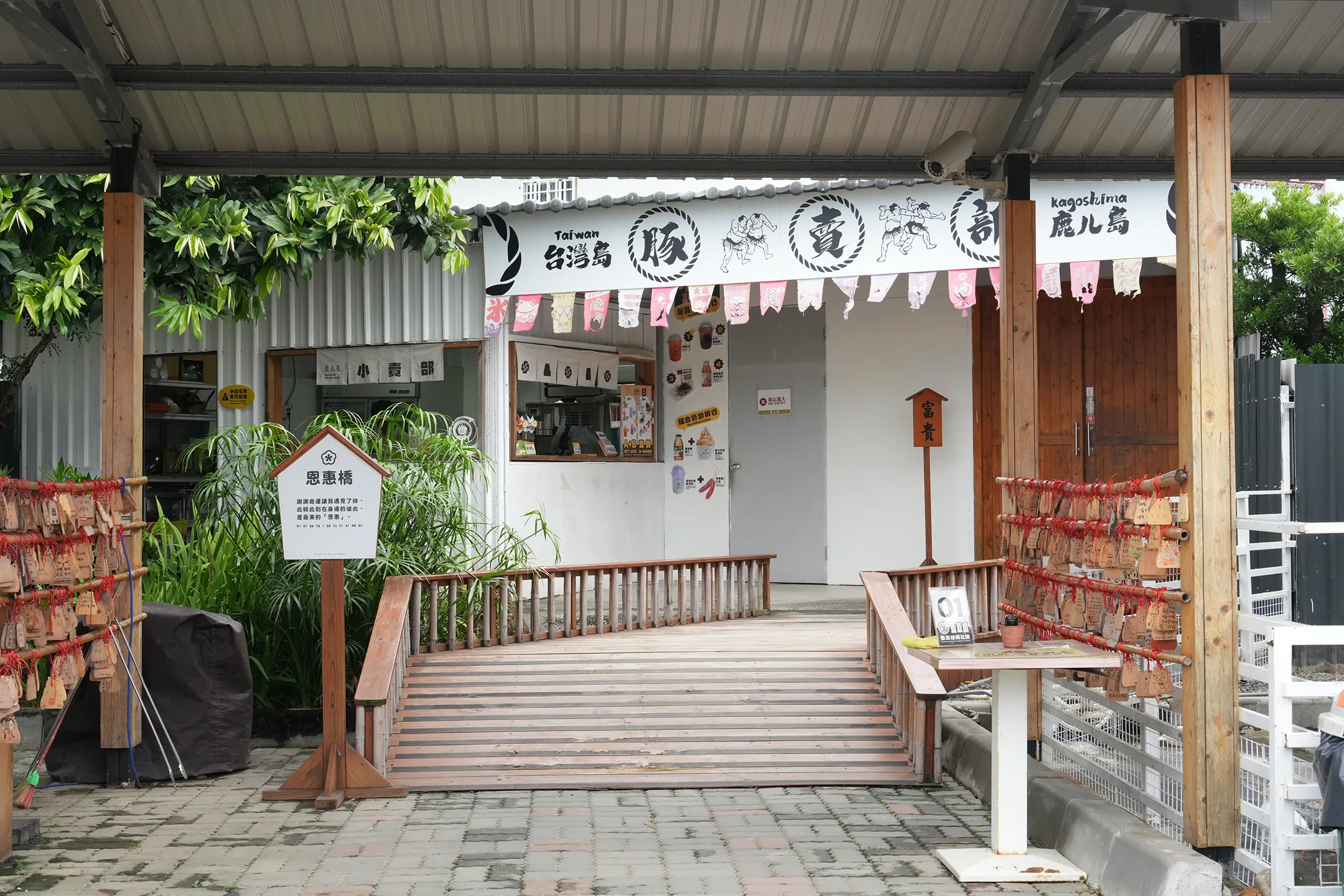 ▼中庭廣場靠近入口的休憩區旁,設有水豚掛牌祈福區,遊客可以把心願或祝福寫在繪馬,再掛上去 。