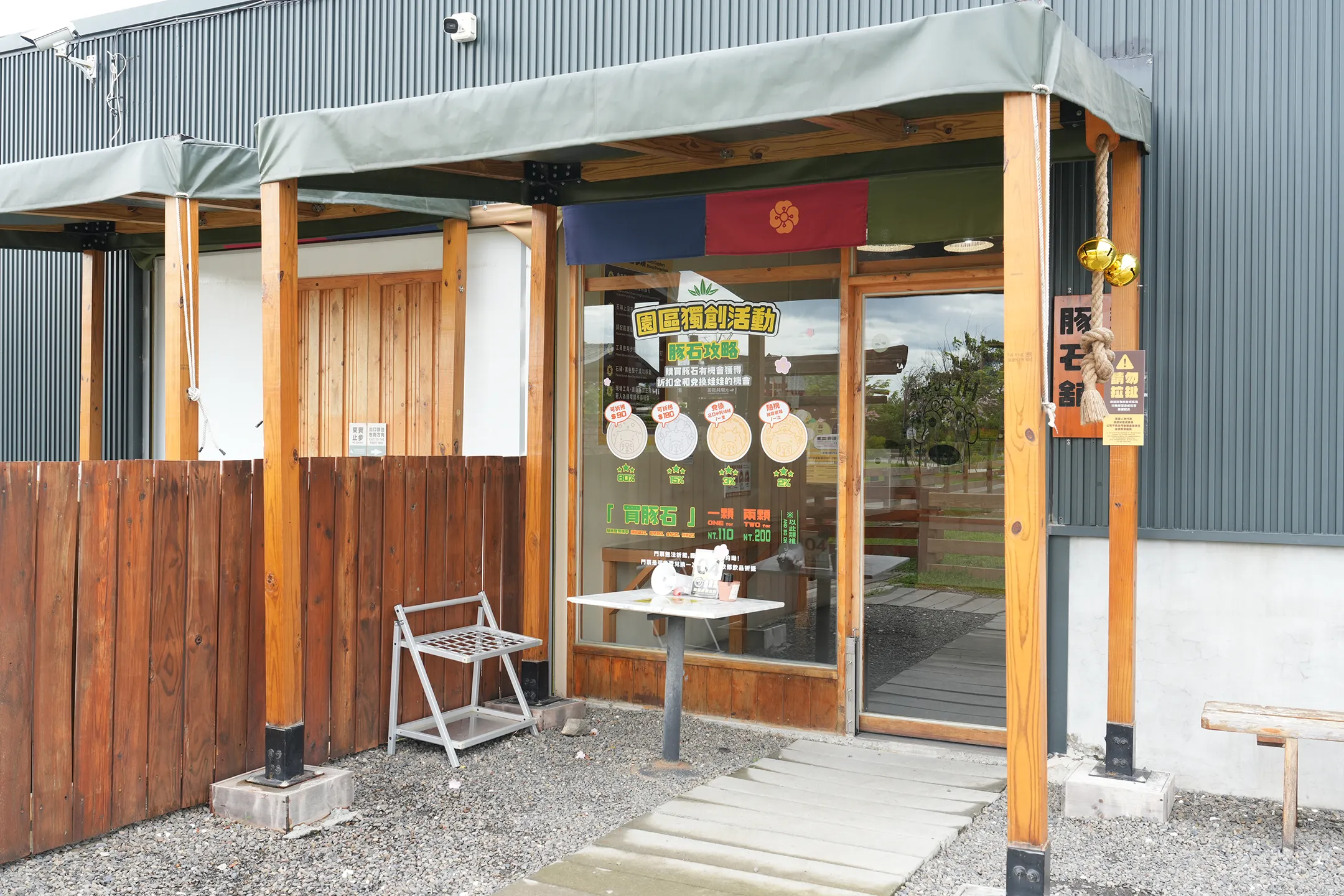 ▼這是園區特色的兌換遊戲區,遊客購買豚石後,在櫃檯旁的工作台用工具敲破豚石,裡面會有不同顏色的豚幣。豚幣分為金幣、銀幣、銅幣三種,可以依照顏色到販賣部兌換不同的禮物。豚石每顆100元,需另外購買。
