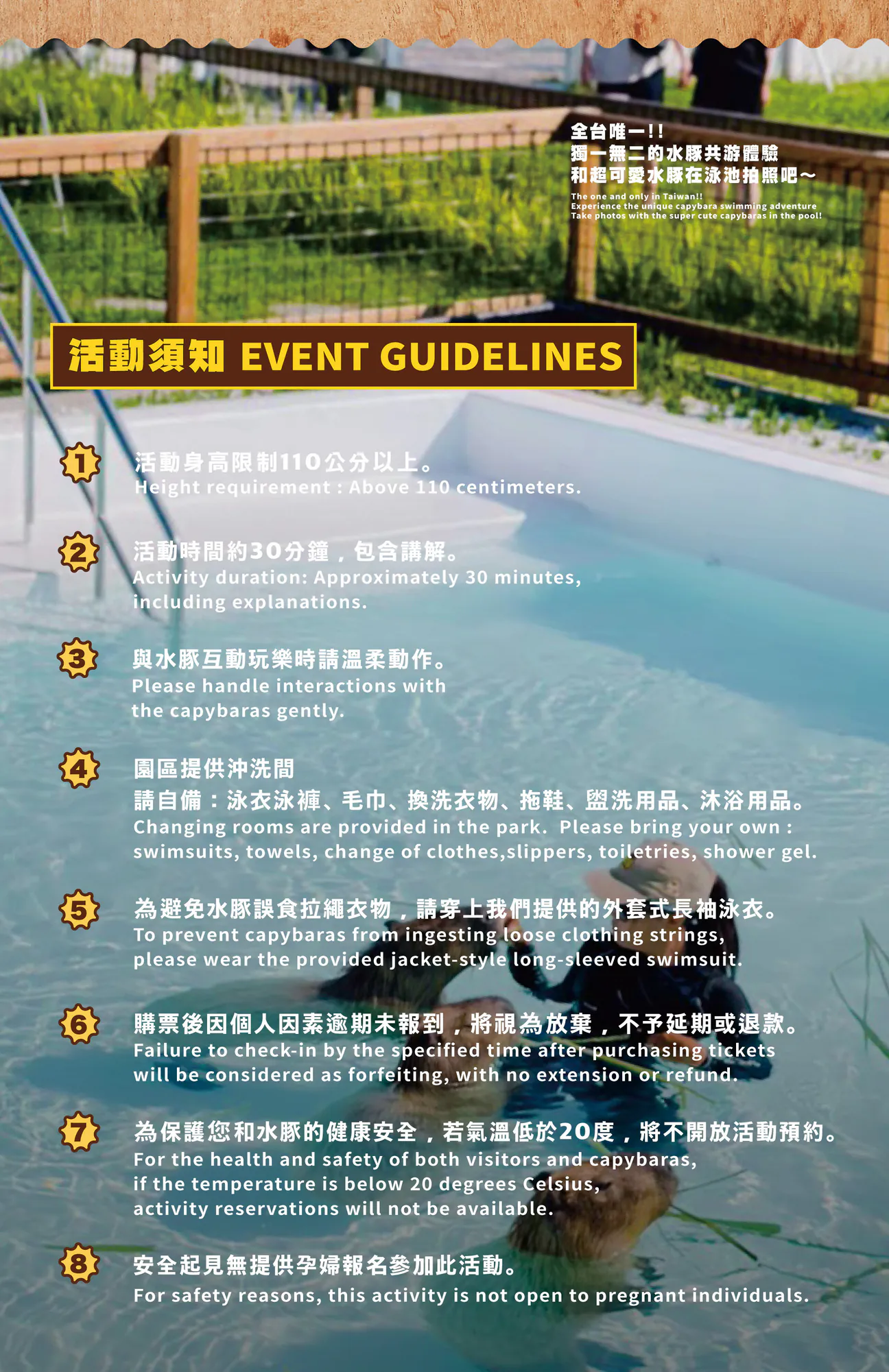 ▼報名水豚共游之前,一定要先詳細閱讀活動須知,尤其需要自備的用品要記得帶齊。