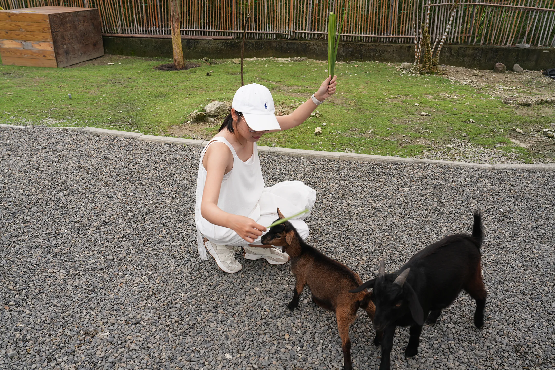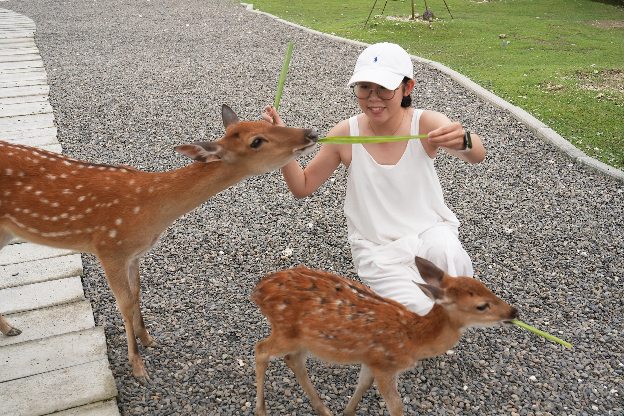 ▼園區內的羊和鹿體型都屬於迷你版,數量也控制得剛剛好,不會出現「動物大軍」把你團團包圍的誇張場面。只要牠們一發現你手上拿著牧草,馬上就會像雷達鎖定目標一樣朝你黏過來,那積極討食的模樣非常可愛,完全無法抗拒牠們的超萌攻勢。