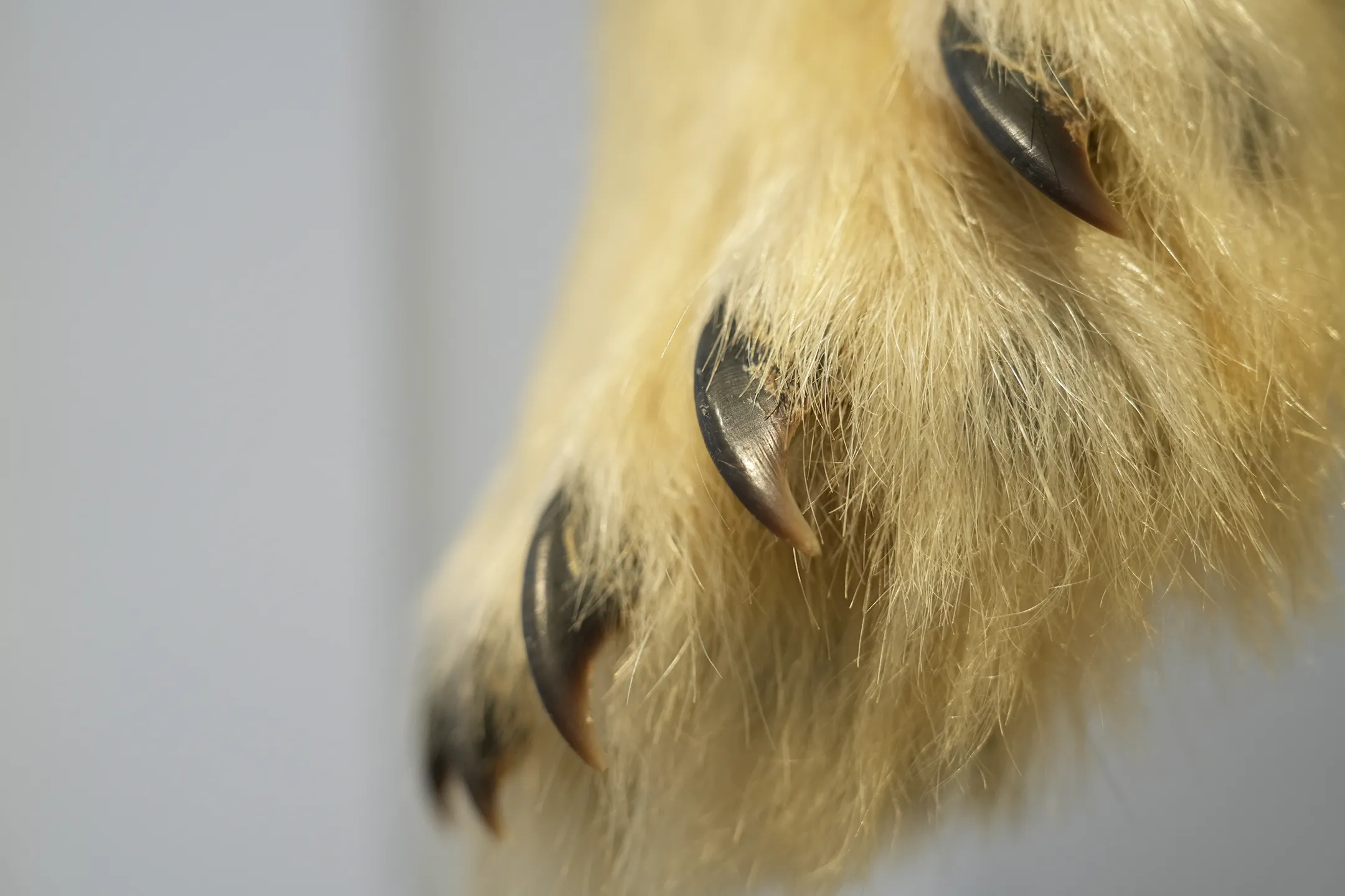 ▼導覽員向我們介紹這具北極熊標本是真實北極熊的爪子,看起來超級銳利,也讓北極熊標本看起來更栩栩如生。