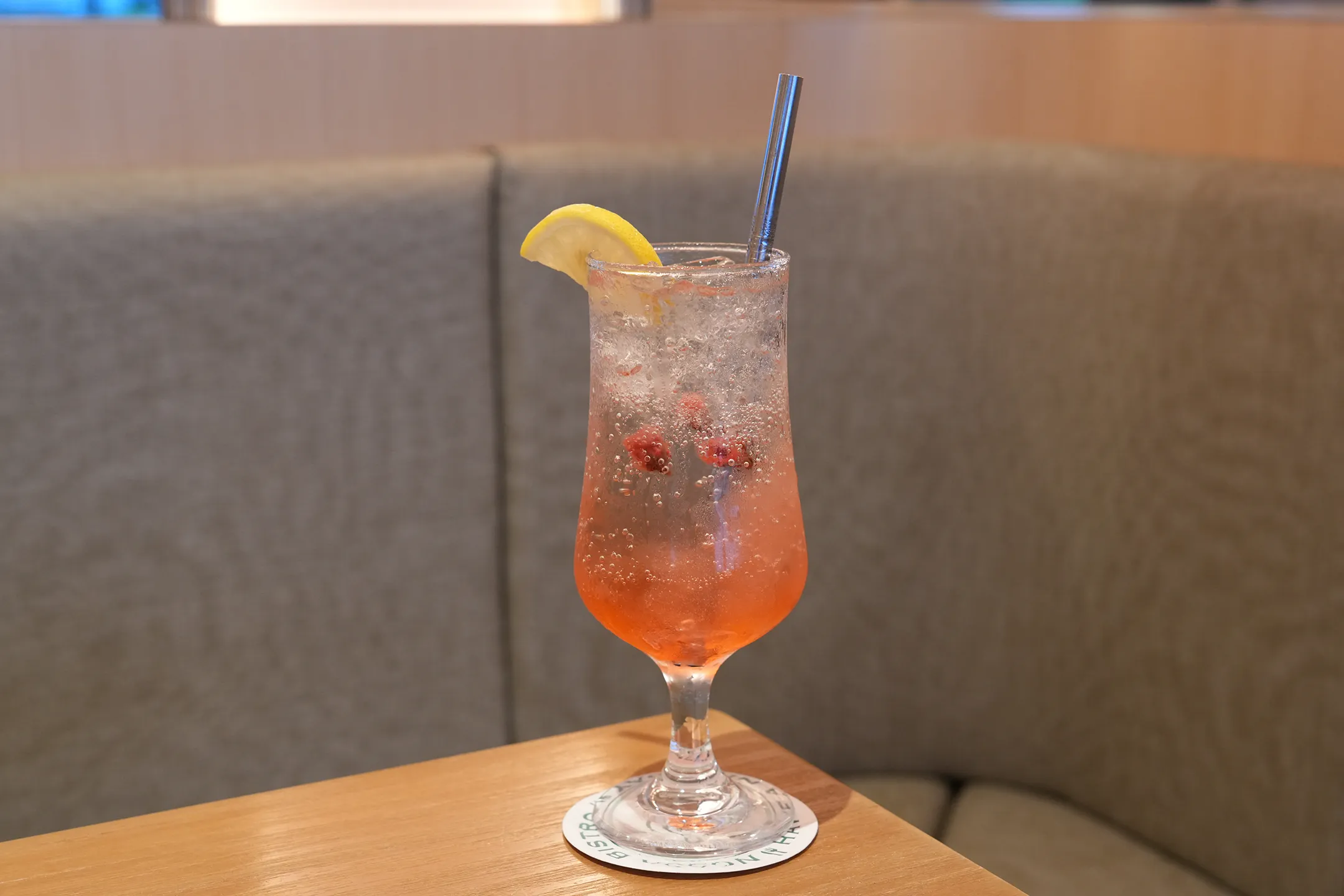 ▼「落櫻氣泡飲」光看外觀就很吸睛,粉嫩的漸層色澤相當夢幻。不過喝起來櫻花糖漿的味道非常明顯,帶有一種特殊的花香甜味,有點像在喝香水的感覺,味道偏人工。我和朋友都覺得這款比較適合拍照打卡,我們都沒有很喜歡這杯。