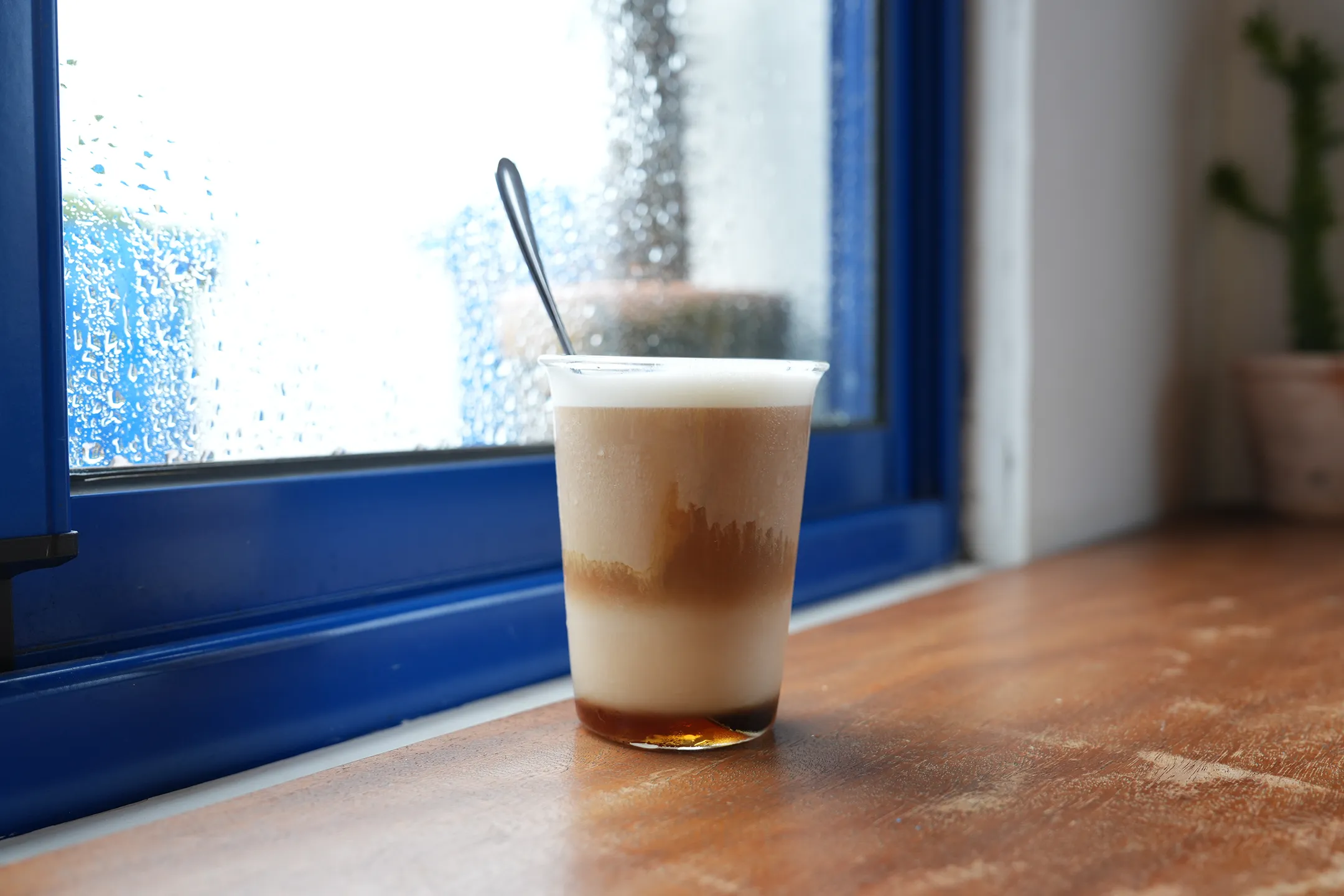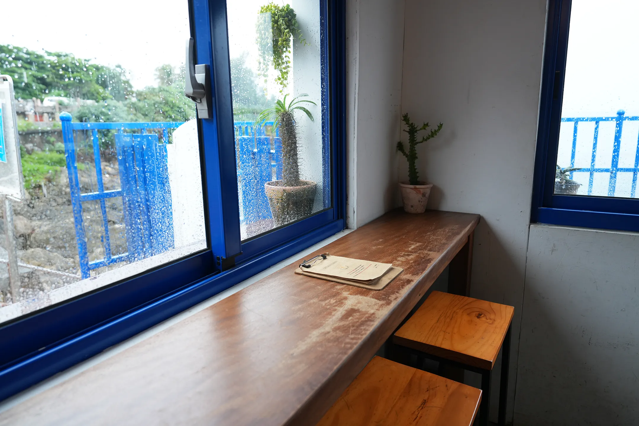 墾丁的「Oct.Sun Coffee」藍白配色的外觀充滿濃濃的希臘風情,遠遠看去彷彿置身愛琴海或濟州島。店面空間不大,約能容納15人,但分成室內、露台和吧檯座位,每個角落都舒適而有特色。這家店最大亮點就是它緊鄰海邊的地理位置。從店門口沿著階梯就能直接走到海灘,坐在戶外座位區更能將海景一覽無遺。雖然我造訪當天遇到下雨,海天一線被霧氣覆蓋,但也因此更期待下次挑個晴朗的日子再來,看見這裡最美的模樣。
